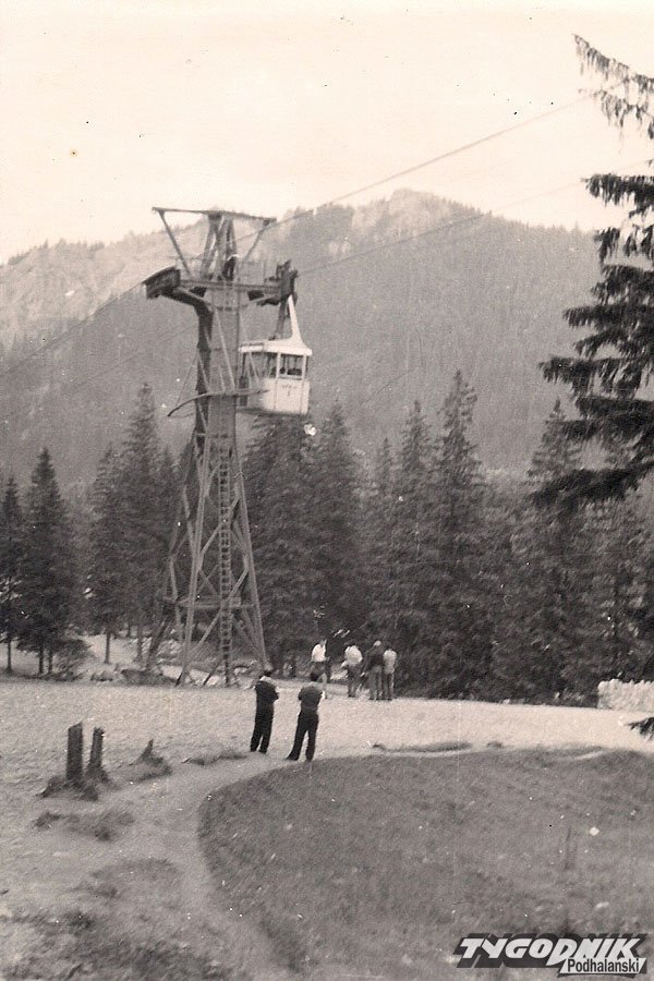 1961 rok. Podwieszanie nowego wagonika w 25-lecie kolejki.Fot. Apoloniusz Rajwa