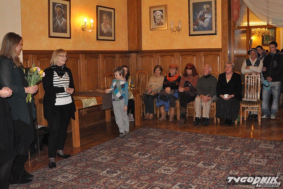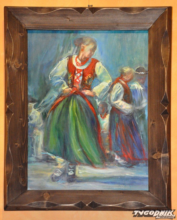 Monika Stanisławska-Pitoń była gościem kolejnych już Spotkań przy Ruczaju w Nowym Targu. Choć artystka pochodzi z Łodzi, głównym tematem jej prac jest góralszczyzna. Zachwycają ją i inspirują góralskie stroje i muzyka. Lubi portretować ludzi. Na Podhalu mieszka od 1998 roku, przeprowadziła się do Kościeliska, skąd pochodzi jej mąż Sebastian Pitoń. Maluje tradycyjnymi technikami, farbami olejnymi, rysuje szkice tuszem, tkaninę traktuje jak duży obraz. Ostatnia jej fascynacja to malowanie dużoformatowych obrazów na ścianach w technice UV. Jej wernisaż uświetniła młoda artystka z saksofonem - Justyna Dąbek, która także oczarowała publiczność.
