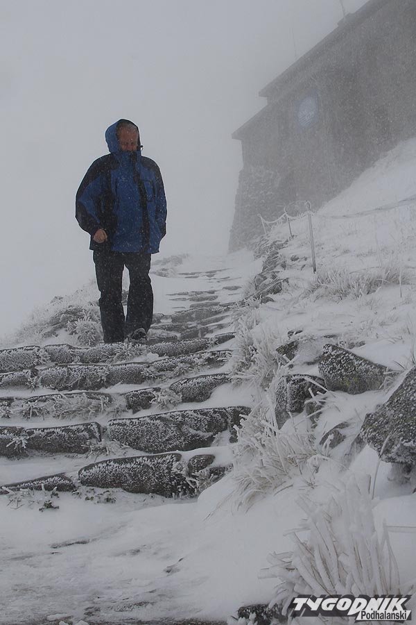 O godz. 8 temperatura w Dolinie Pięciu Stawów wynosiła minus jeden stopień C., a na szczycie Łomnicy po słowackiej stronie gór minus sześć.