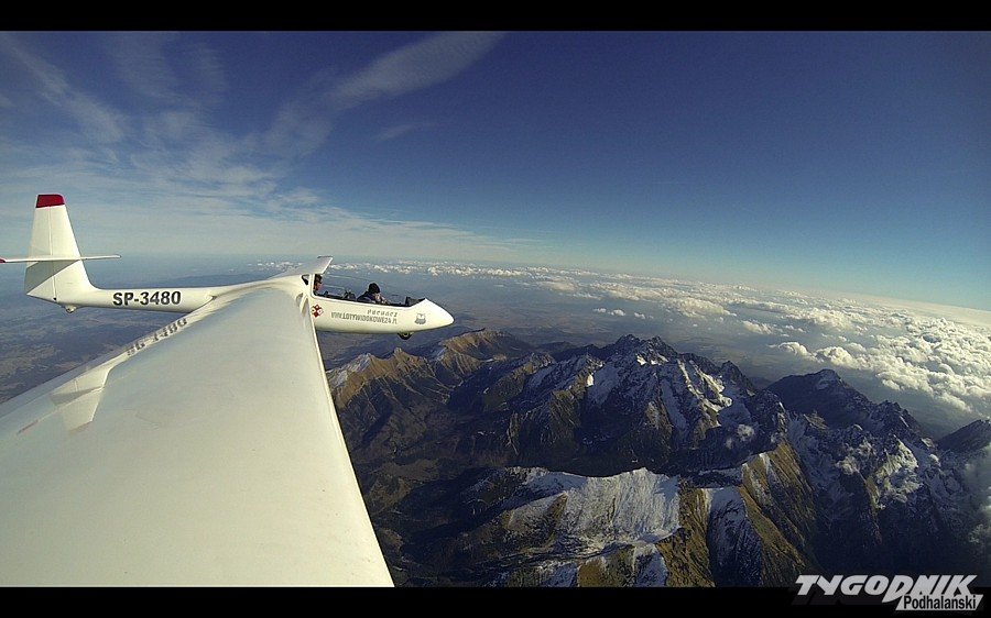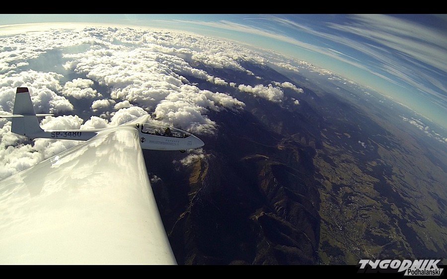 Tak wyglądał wtorkowy lot szybowcem nad Tatrami. Za sterami szybowca "Puchacz" siedzieli dyrektor Aeroklubu w Nowym Targu. instr. pil. Marek Lijewski oraz instr.pil Jakub Świst. Prezentujemy zdjęcia autorstwa Jakuba Śwista. Tak z przestworzy wyglądał halny.