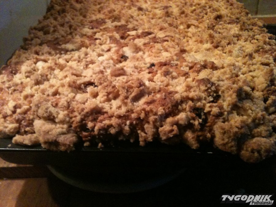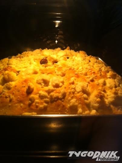 "Po posypaniu kruszonką wkładamy ciasto do nagrzanego piekarnika ( temp ok. 160 stopni) i pieczemy ponad godzinę. Ja wolę placek dobrze wypieczony czyli średnio piekę go godzinę i jeszcze około kwadransa. "