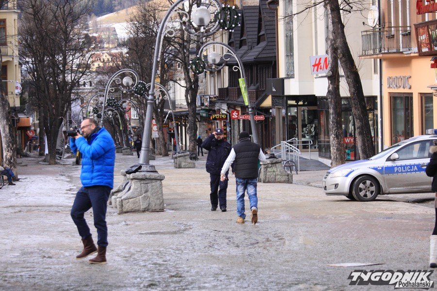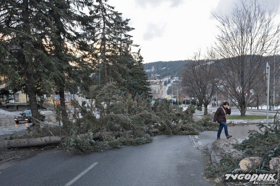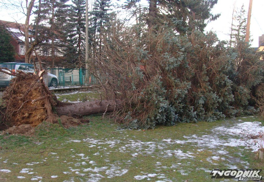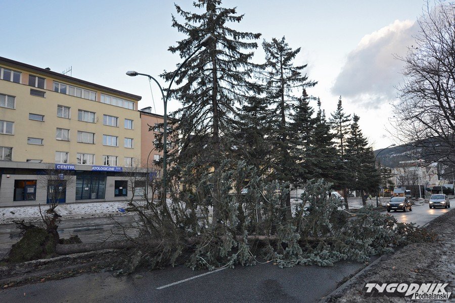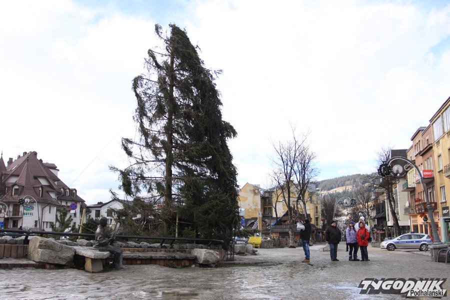 Godz. 12:27 Wiatr złamał choinkę ustawioną przy Oczku Wodnym, ze względu na bezpieczeństwo część Krupówek cały czas jest zamknięta