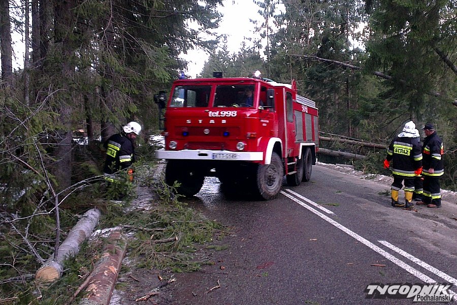Godz. 15:19 Droga z Zakopanego w stronę Łysej Polany przez Wierch Poroniec dzięki pracy strażaków jest przejezdna. Na trasę co pewien czas spadają drzewa, ale są szybko usuwane przez strażaków