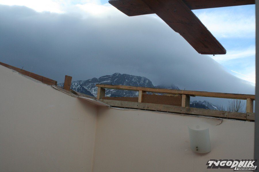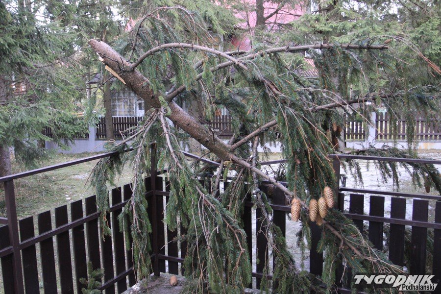 Godz. 13:50 Na tarasie z tyłu naszej redakcji przy ul. Zwierzynieckiej (500 metrów od Wielkiej Krokwi) właśnie wylądował wierzchołek świerka. Wichura wcale nie słabnie