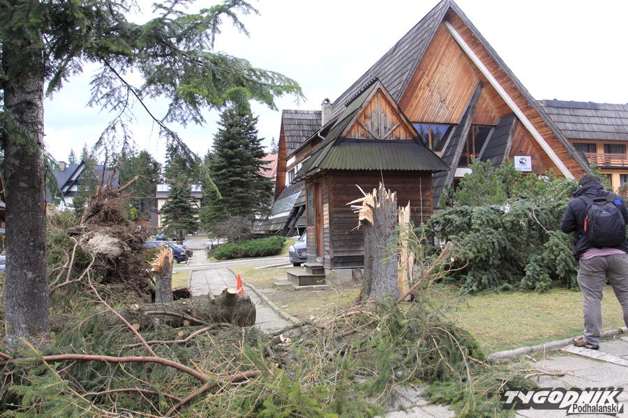 W Dol. Białego, gdzie na wąskiej ścieżce co chwila leżą połamane świerki. W całym mieście turyści fotografują się na tle powalonych drzew i pni.