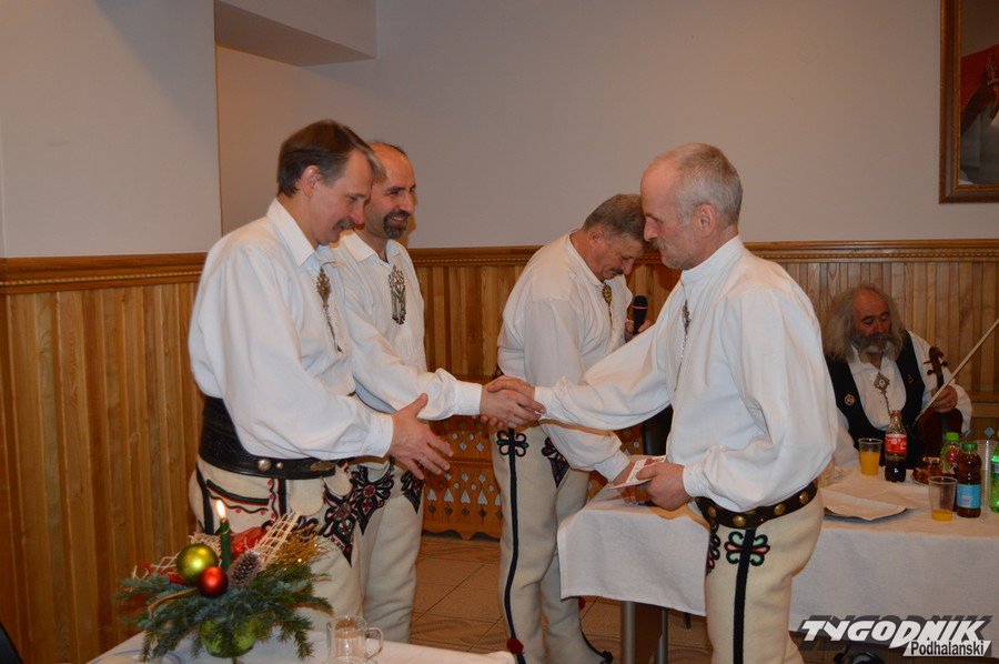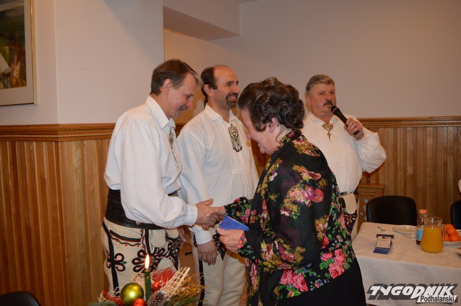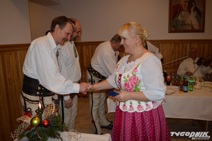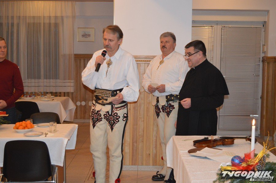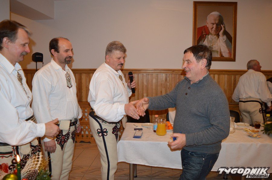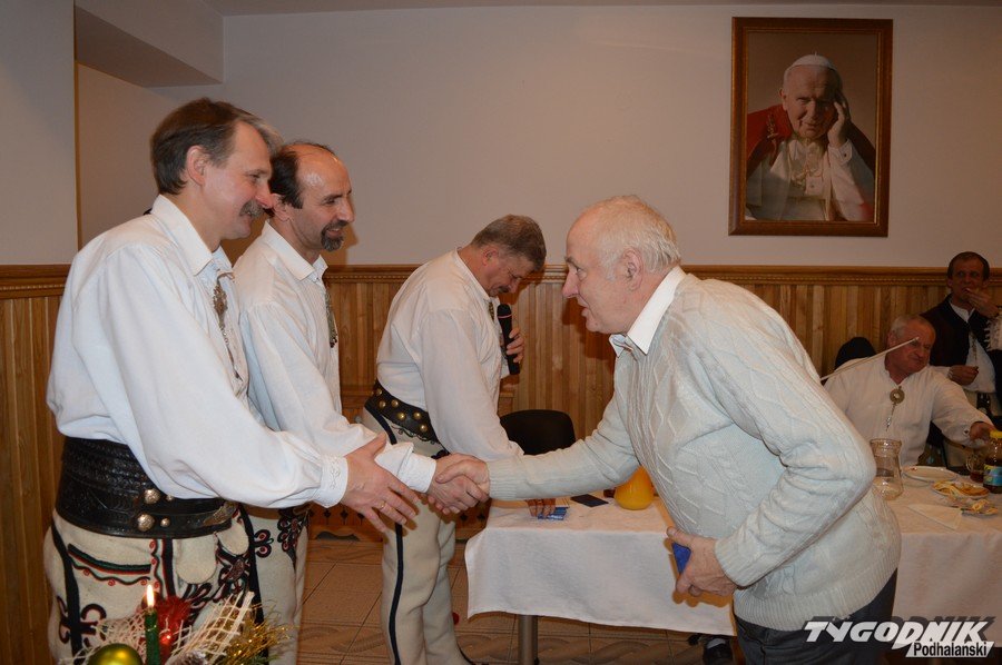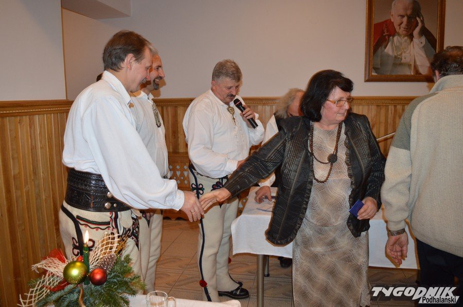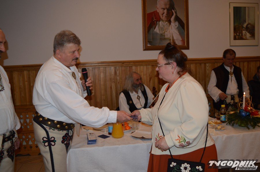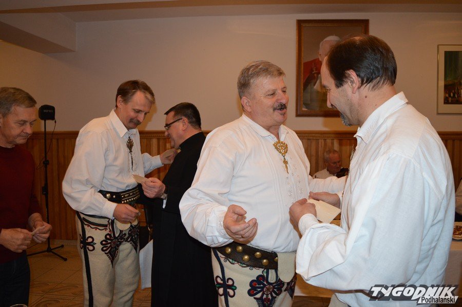Opłatkowe spotkanie w sali konferencyjnej przy Sanktuarium Matki Bożej Fatimskiej było okazją nie tylko do kolędowania i składania życzeń. Pierwsze legitymacje odebrali nowi członkowie powstałego niedawno nowego oddziału Związku Podhalan. Ks. proboszcz Marian Mucha, kustosz Sanktuarium na Krzeptówkach gratulował zawiązania nowego oddziału, a prezes ZP Andrzej Skupień wraz z prezesem nowego oddziału Janem Stachoniem i Janem Glucem wręczali związkowe legitymacje.