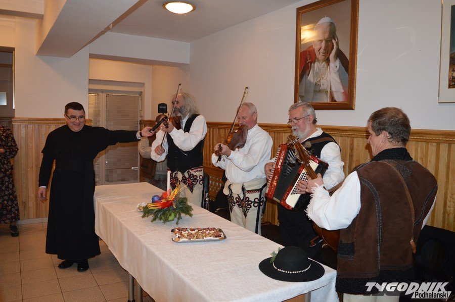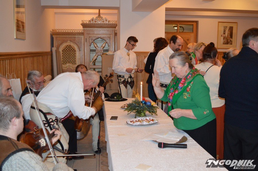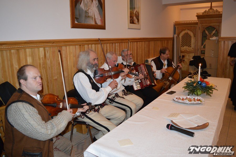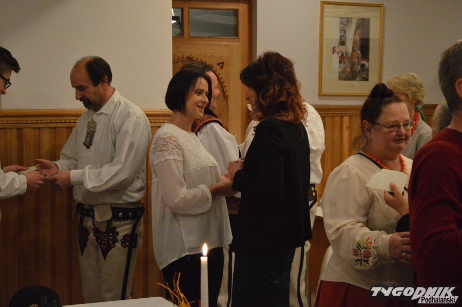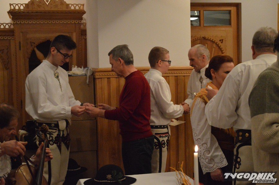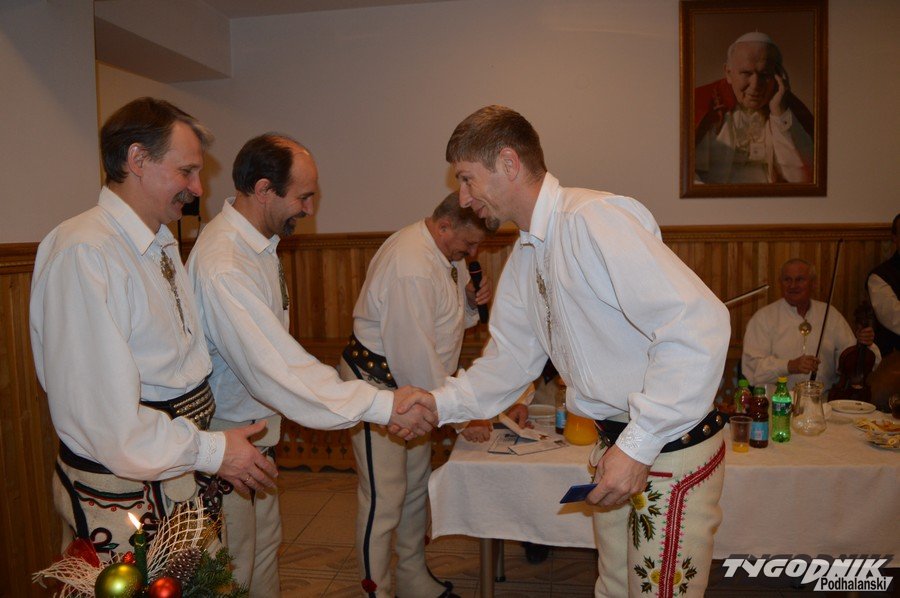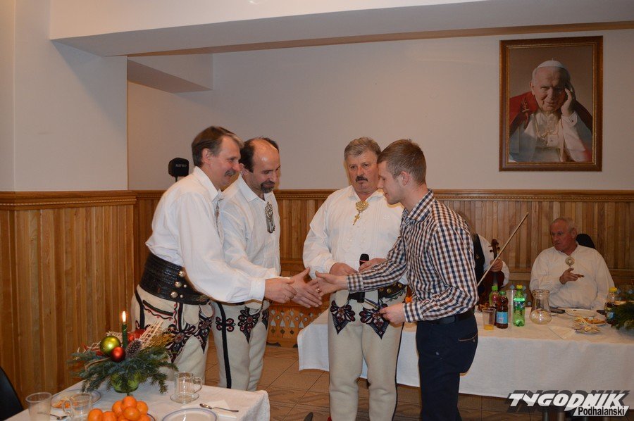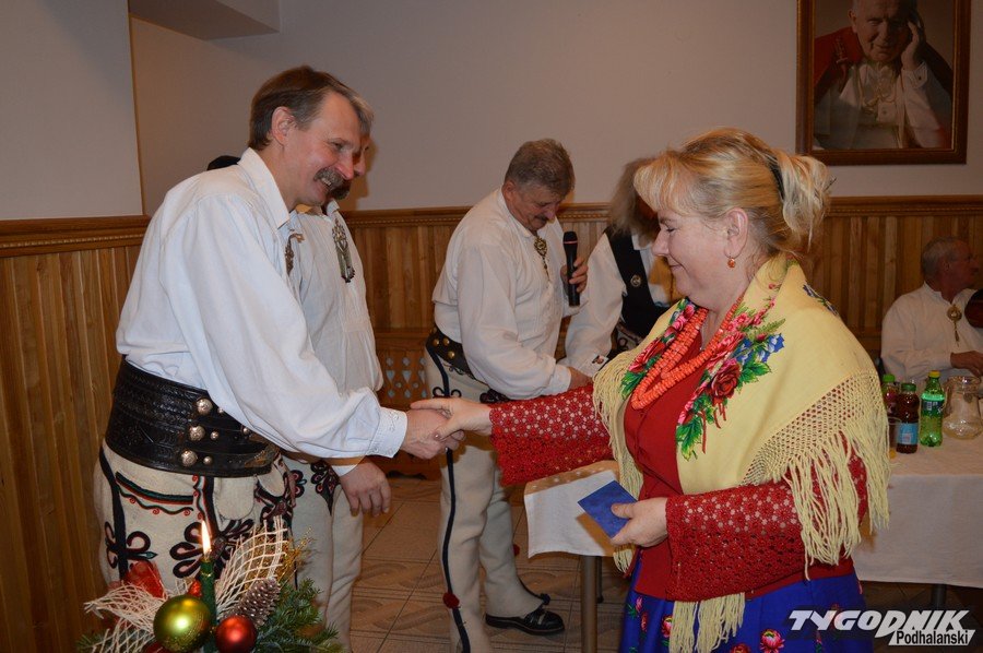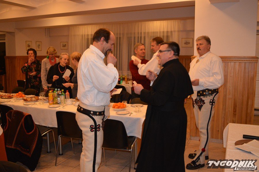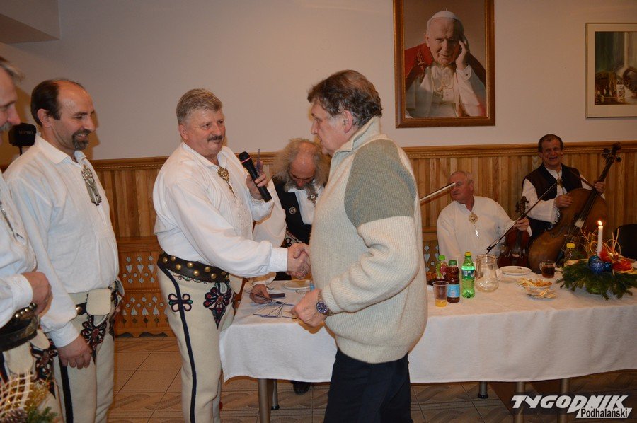 Opłatkowe spotkanie w sali konferencyjnej przy Sanktuarium Matki Bożej Fatimskiej było okazją nie tylko do kolędowania i składania życzeń. Pierwsze legitymacje odebrali nowi członkowie powstałego niedawno nowego oddziału Związku Podhalan. Ks. proboszcz Marian Mucha, kustosz Sanktuarium na Krzeptówkach gratulował zawiązania nowego oddziału, a prezes ZP Andrzej Skupień wraz z prezesem nowego oddziału Janem Stachoniem i Janem Glucem wręczali związkowe legitymacje.
