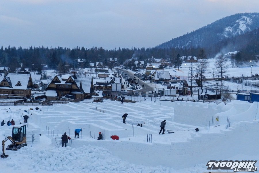 Kończy się budowa największego na świecie śnieżnego labiryntu pod Wielką Krokwią. Ekipa przeszło 40 osób od kilku tygodni stawia korytarze, tunele, a nad wszystkim góruje śnieżna forteca. Atrakcja będzie zgłoszona do księgi rekordów Guinessa.