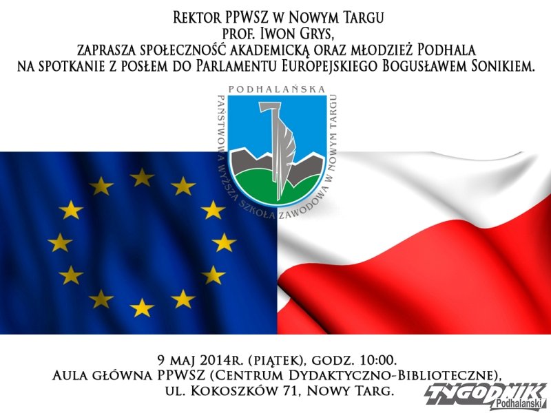 Jutro (piątek, 9 maja) w Nowym Targu gościć będzie europoseł z ramienia PO, Bogusław Sonik. W auli „Podhalańskiej Wyższej” spotka się ze studentami i podhalańską młodzieżą.