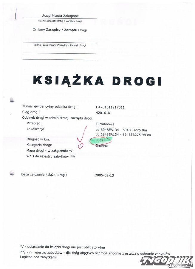 Postanowiłem wczoraj wpaść do wydziału drogownictwa i poprosić o pierwszą stronę książki drogi ul. Kotelnica .