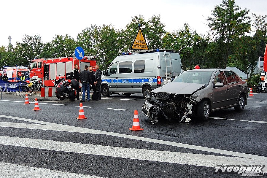 Kierowca jednośladu po zderzeniu z samochodem zmarł w drodze do szpitala.