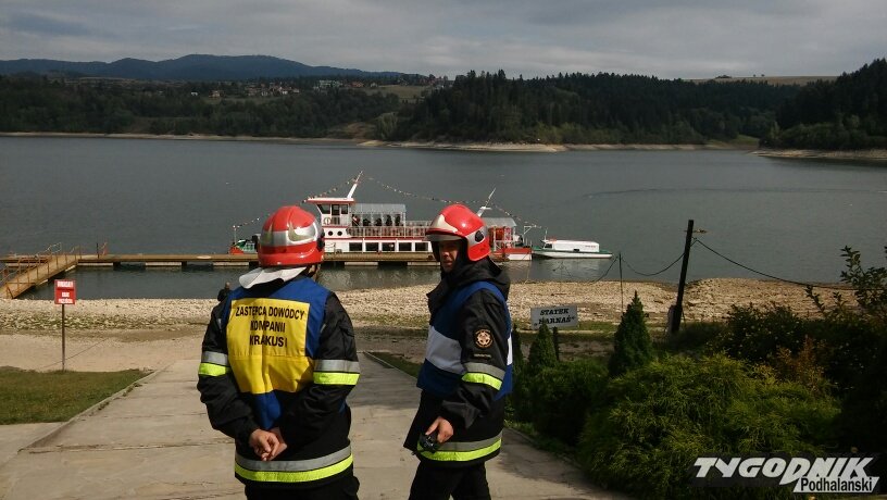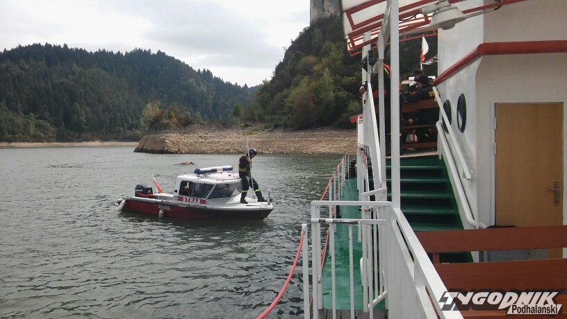 Statek na środku Jeziora Czorsztyńskiego ma awarię. Jeden z pasażerów wypadał za burtę. Woda zalewa pokład. Grupa wycieczkowiczów musi pilnie być ewakuowana - spokojnie nie ma paniki to scenariusz ćwiczeń strażackich "Jezioro 2015".