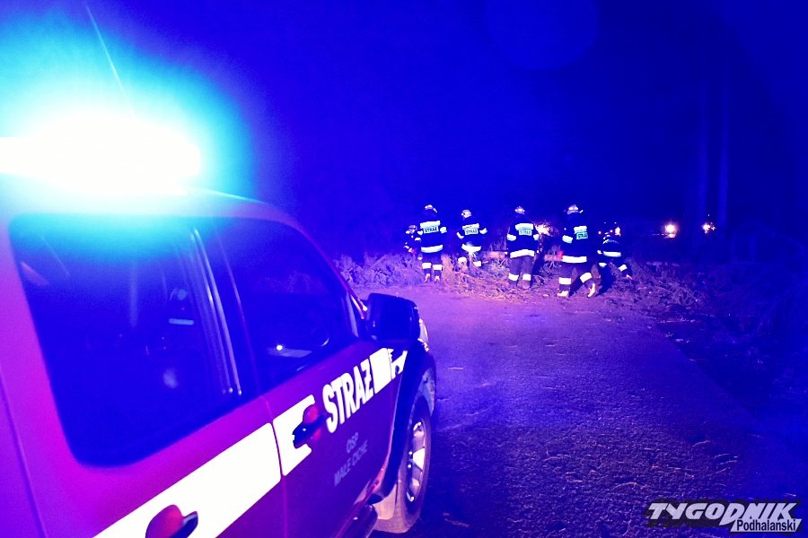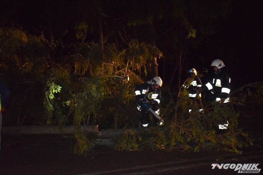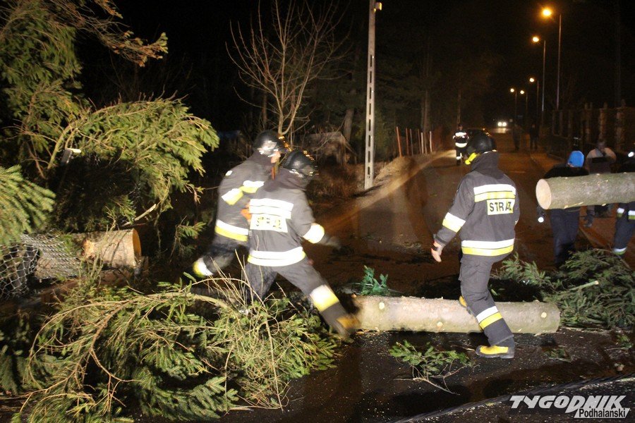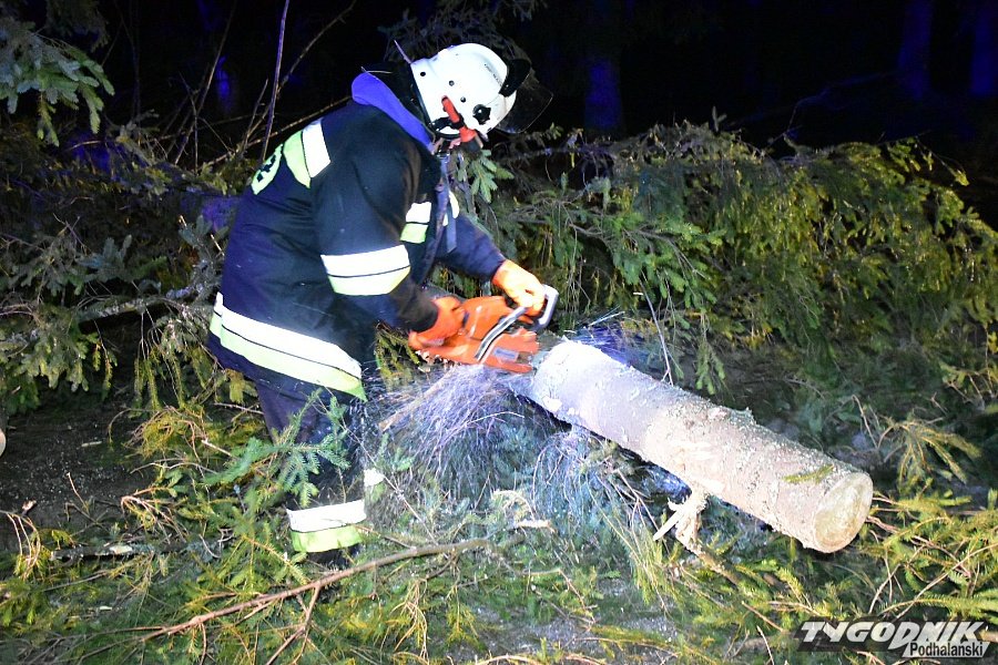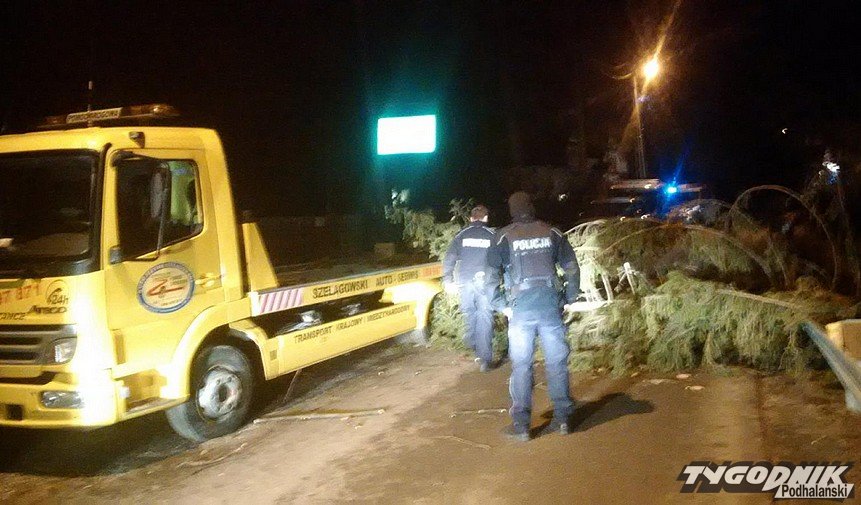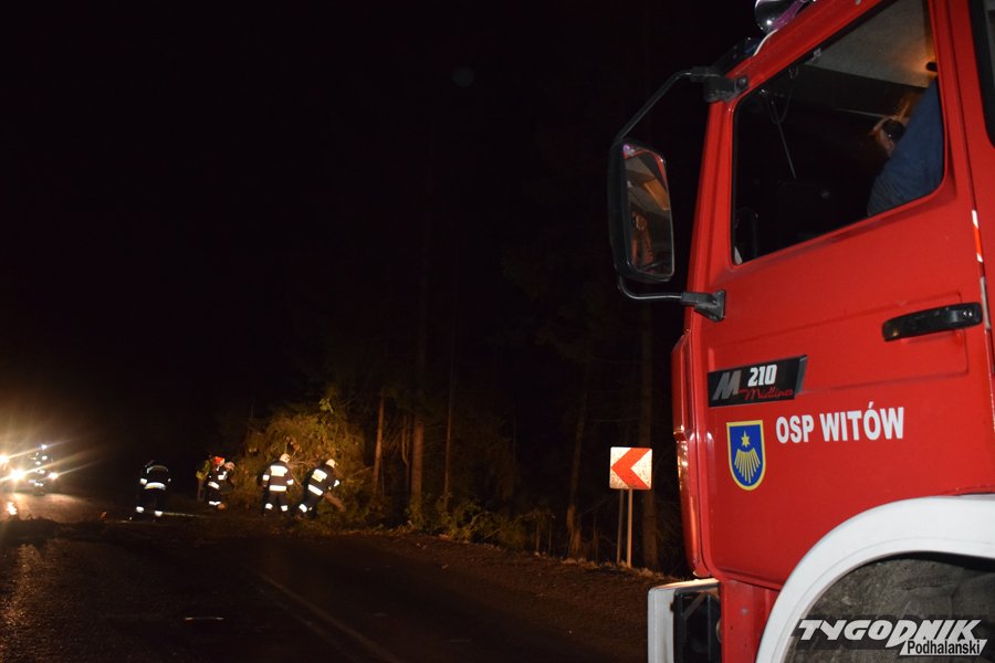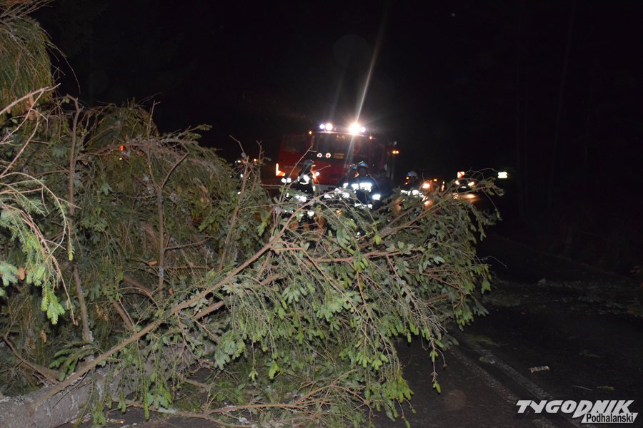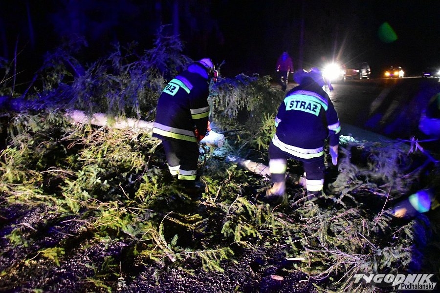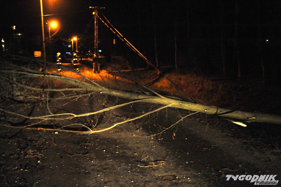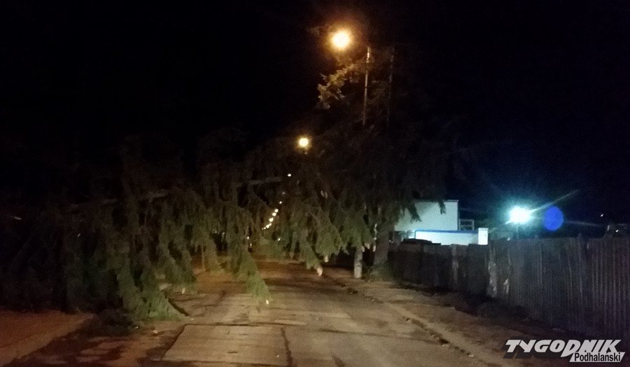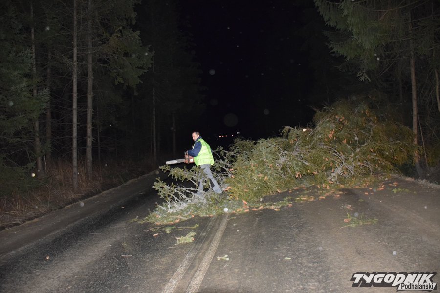 Godz. 00:15 Droga w stronę Łysej Polany od skrętu na Brzegi w Bukowinie zamknięta, na szczęście wiatr jest już słabszy