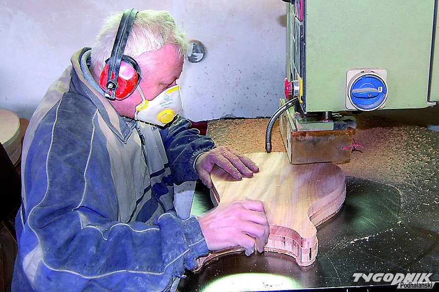 Szybko przestaję się dziwić, skąd taka cena, kiedy dowiaduję się, że np. metr sześcienny drewna, z którego powstaje gitara, kosztuje aż 50 tys. zł. Drzewo sprowadza się z Afryki i Indii. Jednak najczęściej do produkcji gitar wykorzystuje się drewno z jesionu, który rośnie w bieszczadzkich lasach. Najlepiej jak rośnie na poziomie 600 metrów nad poziomem morza. – Kiedy drzewo jest ścięte, to trzeba je jeszcze osuszyć w specjalnym pomieszczeniu, gdzie wilgotność powietrza nie może zejść poniżej 8%. Potem poddajemy je selekcji. Wybieramy tylko takie, które nie ma sęków ani jakikolwiek zarysowań – mówi Marek Kolasa. Dodaje z uśmiechem, że lutnicy bardzo dużo drewna odrzucają, w efekcie niemal całą zimę ma czym palić w piecu.