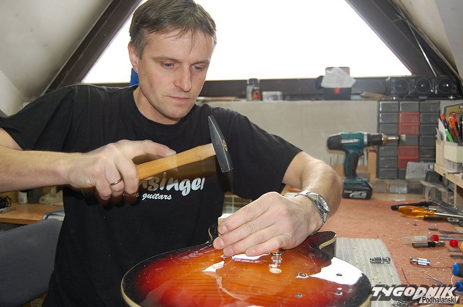 – Kiedy gitara jest prawie gotowa, drewno potrafi człowiekowi spłatać wiele figlów. A to się powygina, a to się rozeschnie. Wtedy lutnik bada drewno tak, jak lekarz bada chorego i od razu wie, co jest chore, co trzeba poprawić – mówi Edward Sroka. W tym momencie przypomina mi się majster Wisienka, który wystrugał niesfornego pajaca – Pinokia. Na szczęście pajac stał się chłopcem i zgrzeczniał. Pewnie gitary też stają się posłuszne i grają tak, jak muzycy nakazują. – My każdej gitarze dajemy duszę – podkreśla Edward Sroka.