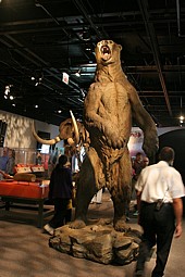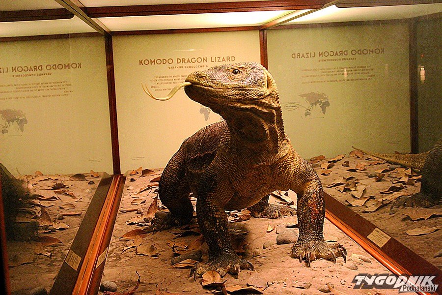 Niedźwiedź jaskiniowy zrekonstruowany w prawdziwie amerykańskim stylu: ogromna postura przypominająca nieco sylwetkę kreskówkowego misia Yogi. Tyle że wyraz twarzy stworzenia jakby nie z kreskówki, a raczej z horroru. Inkaskie statuetki, indiańskie totemy, gablotka z eskimoskimi wabikami na wieloryba, a nawet spreparowany pociągowy pies. Po lewej stronie hallu niepozorna tabliczka, kierująca do lwów z Tsavo. Wcześniej jednak sale z wyeksponowanym zwierzostanem: Azji, Afryki. W jednej z gablot swojskie (wypchane) bociany, siedzące na gnieździe pośrodku osady ze studziennymi żurawiami i kurnymi chatami krytymi strzechą. Tabliczka z wyróżnioną na czerwono nazwą odtworzonej wioski brzmi bardzo swojsko: Krzemieniec. Ekspozycja musi być leciwa, bo zmieszczona obok mapka ulokowała wołyńską wieś w granicach Polski „od morza, do morza” z Wileńszczyzną, Kresami i… wolnym miastem Gdańsk.