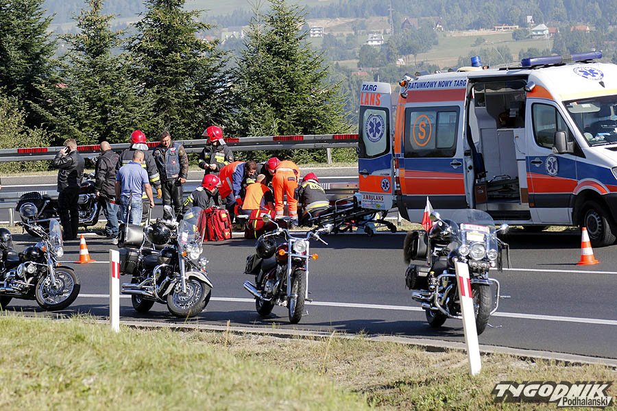 Motocykl wywrócił się na ostrym zakręcie w obrębie niesławnych "patelni" na zakopiance w Chabówce.
