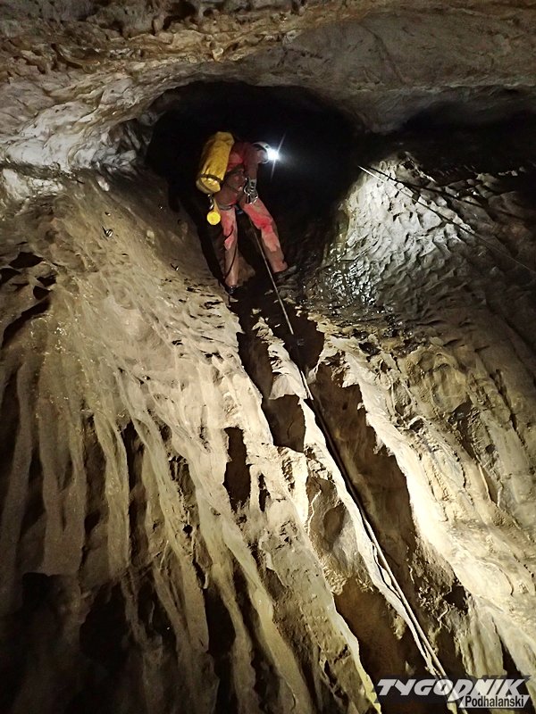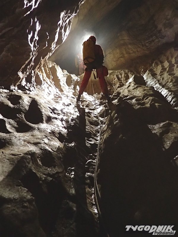 I dalej, już po kilkunasto metrowym zjeździe do tzw. Chatki i przejściu przez tzw. Widły, doszliśmy do Sali Złomisk, gdzie był czas na rozmowy, krótki posiłek i wykonanie kilku prób zdjęciowych. Najwyższy czas na powrót.