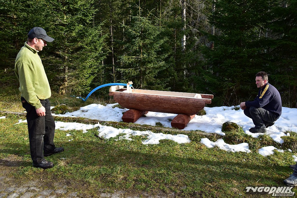 Przy nowym poidle woda za pomocą długiego węża ukrytego w krzakach dostarczana jest grawitacyjnie z pobliskiego górskiego, krystalicznie czystego potoku, więc nawet spragnieni turyści będą mogli zaczerpnąć z korytka.