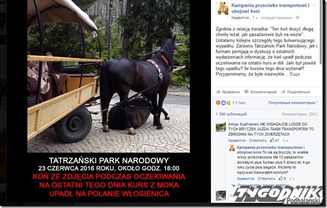 Odpowiadając na pytania osób dotyczące informacji zamieszczonych ostatnio w Internecie wyjaśniamy, że w dniu 23 czerwca b.r. na trasie do Morskiego Oka nie miało miejsce żadne zdarzenie, które wiązałoby się z jakimkolwiek uszczerbkiem zdrowia czy krzywdą koni.