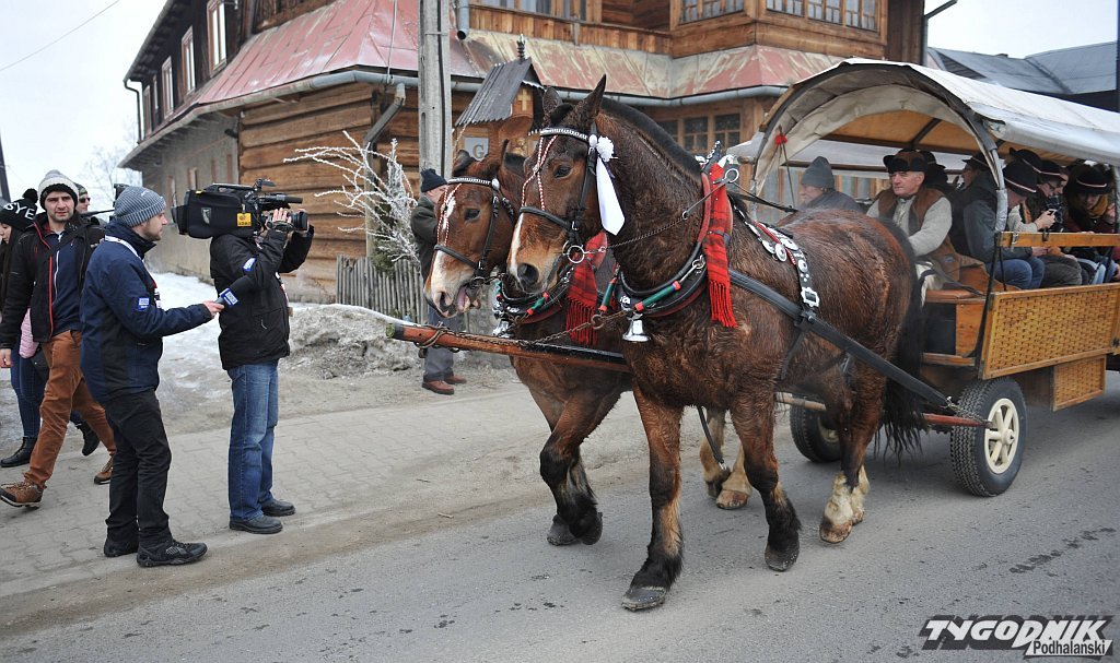 W bryczkach i fasiągach zasiedli goście i uczestnicy karnawału, którzy przez kolejnych kilka dni prezentować się będą na deskach Bukowiańskiego Centrum Kultury "Dom Ludowy".