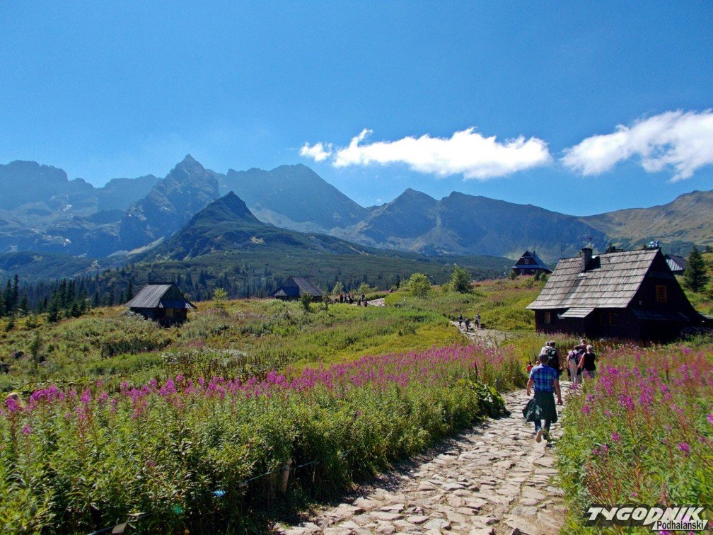 Polana ciągnie się niczym biała tasiemka po zielonej łące,wznosząc się po Siodłowej Perci na Przełęcz między Kopami i osiągając wysokość 1499 m n.p.m. Dochodzimy tutaj w około półtorej godziny. Chwila przerwy, zerkamy dookoła, pochłaniamy kilka łyków wody, robimy zdjęcie i ruszamy dalej, bo za chwilę wyłoni się widok-cud! Zawsze chciałam tu dojść, ponieważ u mnie w domu na ścianie wisi wielkie zdjęcie oprawione w ramy a na nim dwa Kościelce i szałasy. I jak dotarłam tu po raz pierwszy to zawsze już wracam. Jeszcze tylko chwila prostym szlakiem w dół do Hali i oto jest. Oto On. Mój przeuroczy zakątek, wycięty jakby z bajki, z obrazka ze ściany. Nieziemski widok: fioletowe łany kwiatów na zielonym tle traw i sino brunatnych skał Kościelców, Koziego Wierchu, Żółtej Turni, Świnicy… Razem wszystko tworzy przepiękna panoramę.
