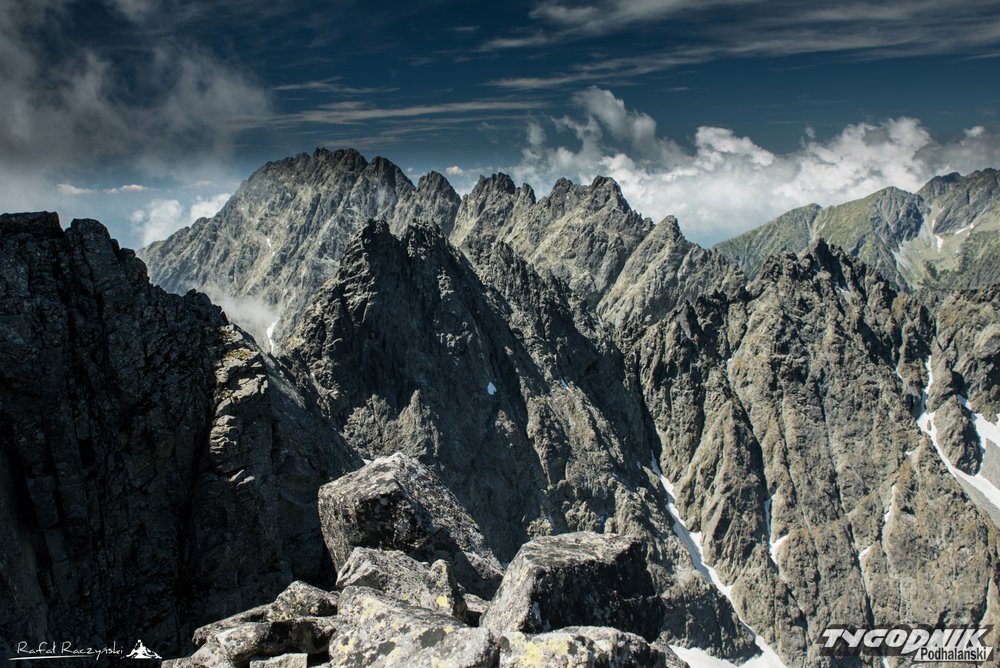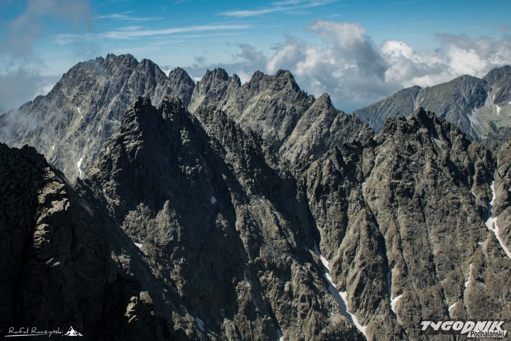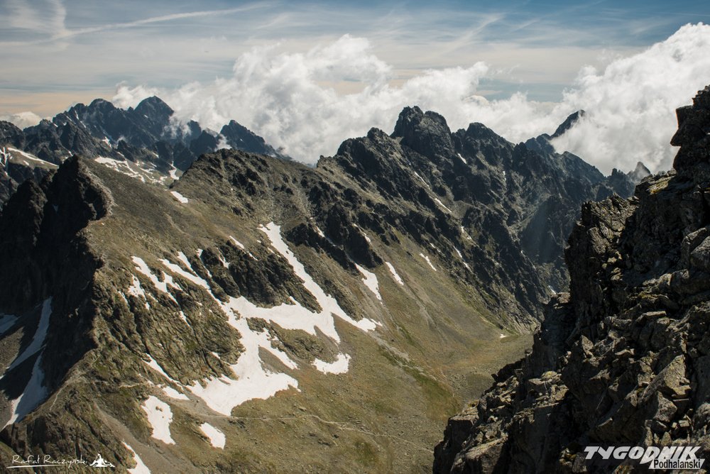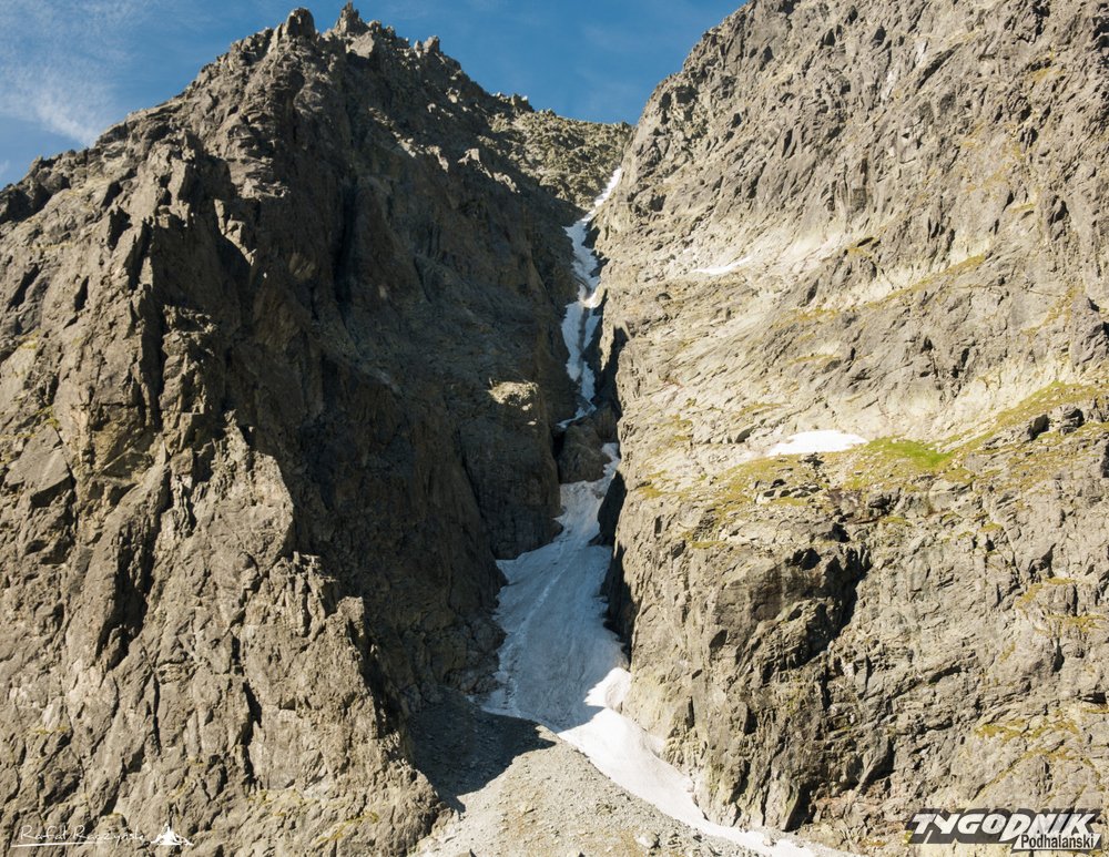 Staramy się iść centralnie granią, choć oczywiście potencjalnie trudniejsze fragmenty można omijać, schodząc miejscami z samej grani. Pniemy się powoli na Wielicką Turniczkę, a tymczasem pojawiająca się ekspozycja już do końca drogi Martina nie pozwoli nam o sobie zapomnieć. Mijamy kolejno Niżną Wysoką Gierlachowską, Gierlachowksą Turniczkę, Wyżnią Wysoką Gierlachowską, Lawinowy Szczyt, aż wchodzimy na rozszerzający się szeroki grzbiet, będący głównym wierzchołkiem Zadniego Gerlachu.