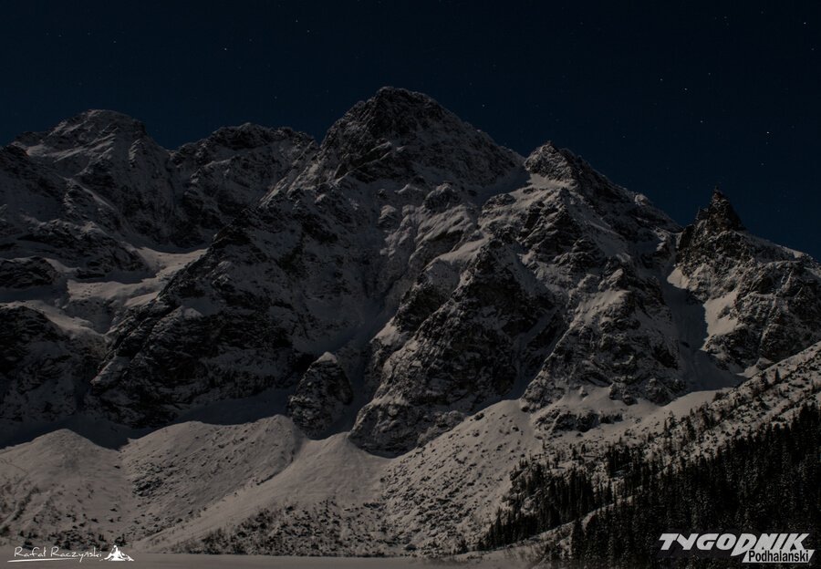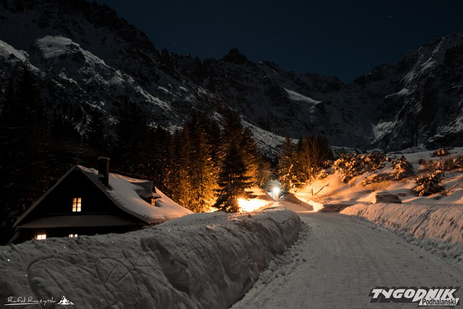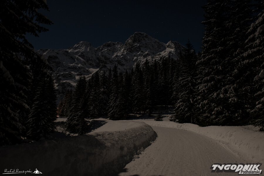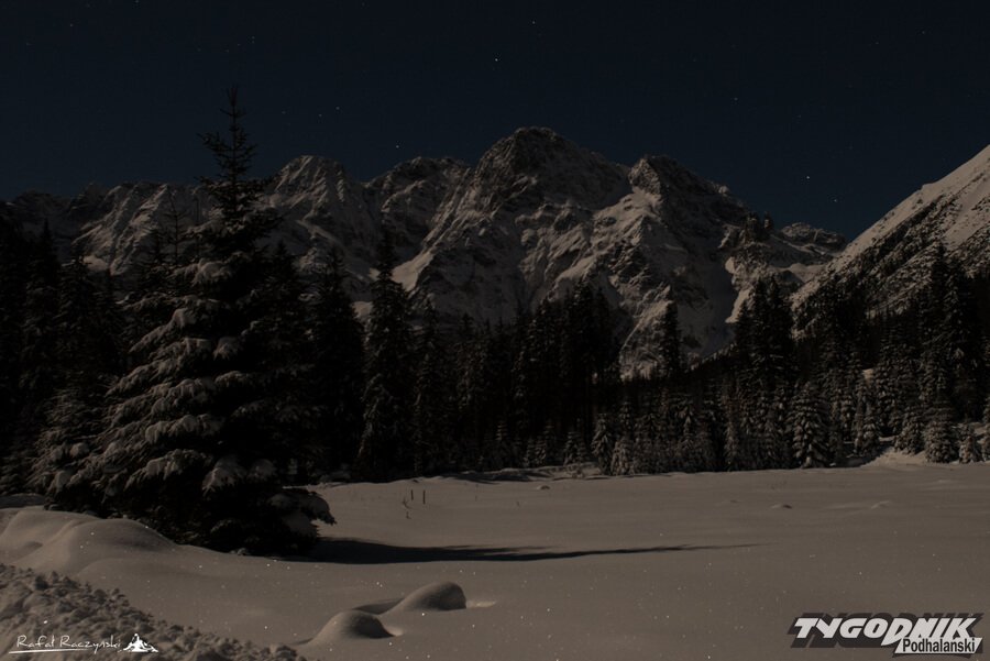Piękna zima dookoła. Na szlaku żywej duszy. A w głowie słowa Kanta „niebo gwiaździste nade mną [...]”. W bezkresie milionów gwiazd docieramy zmarznięci do schroniska. Kuchnia już powinna być zamknięta, a tymczasem gorąca herbata i szarlotka mimo wszystko lądują na naszym stole. Księżyc prawie w pełni szybuje po niebie, oświetlając Dolinę Rybiego Potoku i potężne, królujące nad nią Mięguszowieckie Szczyty. Można by tak stać na tarasie i patrzeć przed siebie w nieskończoność. Zresztą sami zobaczcie…