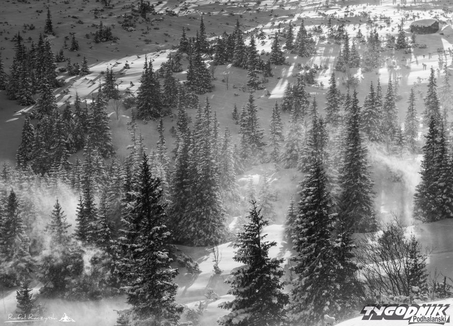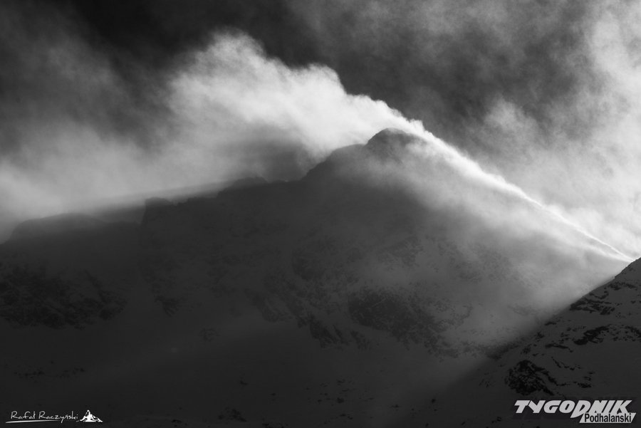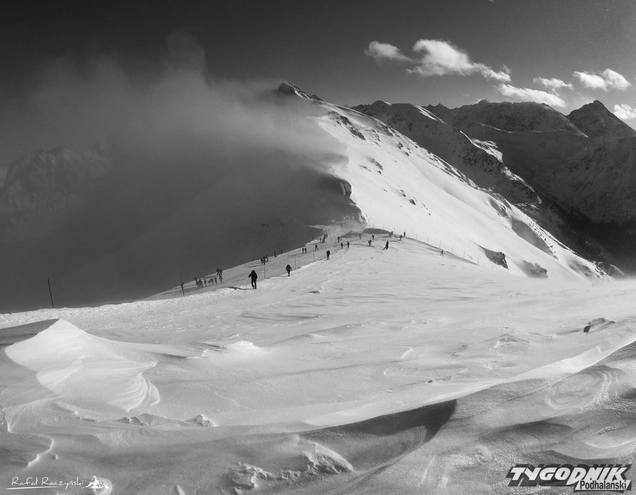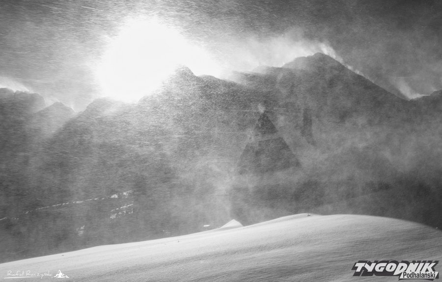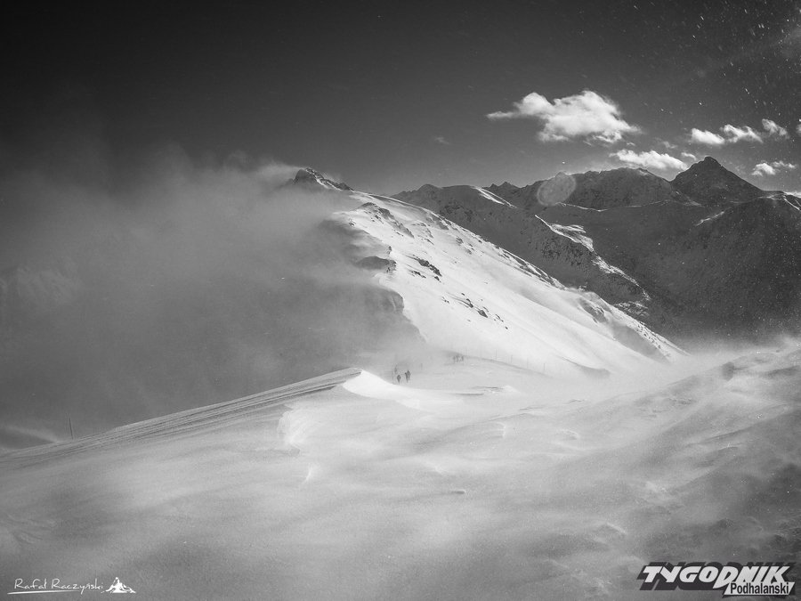 Zakładamy skitury i ruszamy przed siebie. Mamy piękny, spokojny poranek, który zupełnie nie wskazuje tego, co ma się wydarzyć kilka godzin później. Prognozy pogody były nam znane, więc szliśmy na Kasprowy w konkretnym celu - uchwycić początki halnego. Między 12:00, a 13:00 kiedy na szczycie kręciliśmy film, podmuchy dochodziy do 100 km/h, jednak dzisiejszej nocy odnotowano tam podmuchy o sile 154,9 km/h. Wyobraźcie sobie, co musiało się tam dziać, skoro przy wietrze mniejszym o 54 km/h wyglądało to tak...