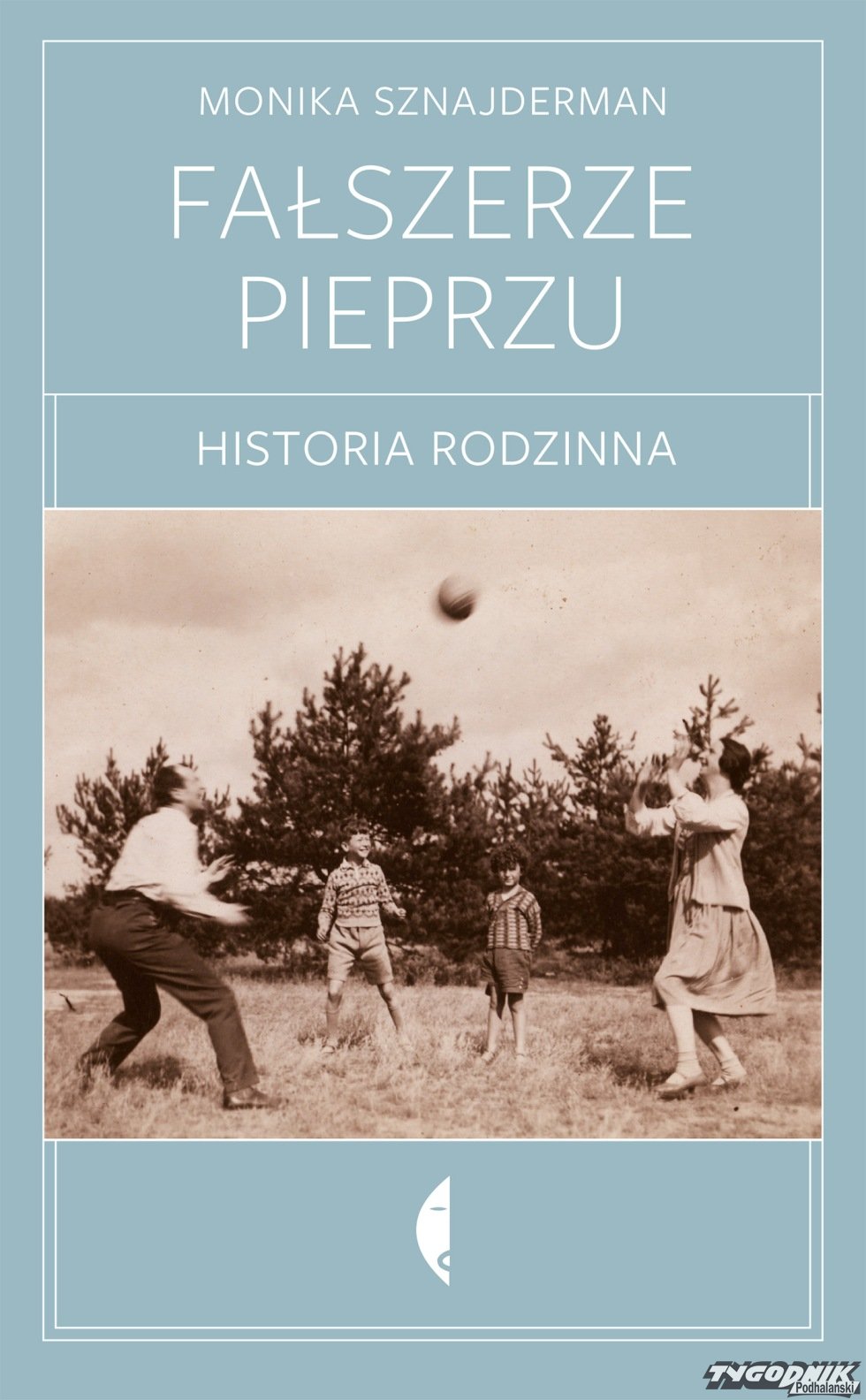 Okładka tej książki nie zdradza jej złożonej zawartości i dramatycznej wymowy. Ot sielski, rodziny obrazek. Dwoje dorosłych – zapewne rodzice, gra na trawie w piłkę z dwójką chłopców, w tle młody, iglasty zagajnik. Ojciec ubrany elegancko: skórzane półbuty, spodnie od garnituru, biała koszula, zapewne przed rozpoczęciem gry zdjął marynarkę. Mama w jasnej sukience. Dwaj chłopcy, mają po kilka lat, jeden młodszy, drugi starszy, we wzorzystych sweterkach i krótkich spodniach. Unosząca się w powietrzu piłka, sylwetka ojca i ręce mamy rozmazane ruchem. Śmieją się radośnie. Tylko najmłodszy, o gęstej kędzierzawej czarnej czuprynie zauważył fotografa i patrzy prosto w obiektyw, jakby nie uczestniczył w zabawie. Bladoniebieska okładka, proste litery.