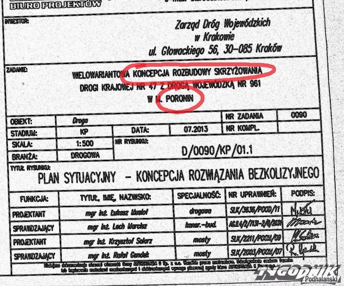 Koncepcja przebudowy skrzyżowania (skrzyżowanie zakopianki z drogami: w stronę Bukowiny i Białki Tatrzańskiej oraz Suchego i Zębu).Stawiam na Andrzeja - jest zwolennikiem podobnych zasad w życiu publicznym jak i ja .