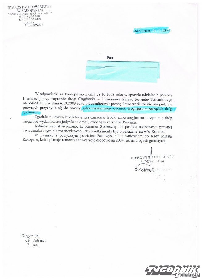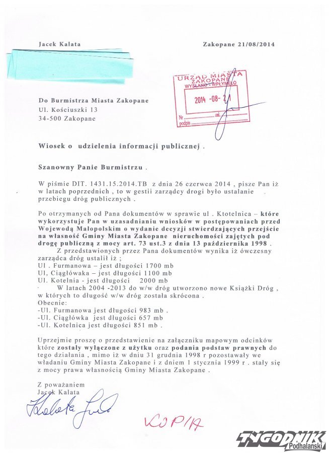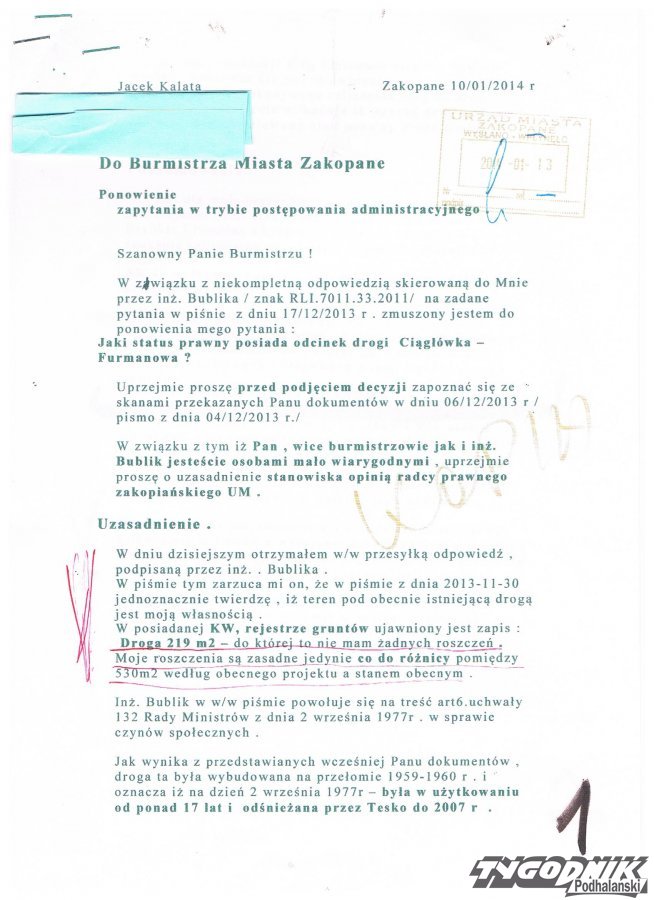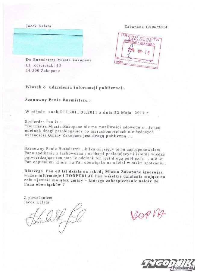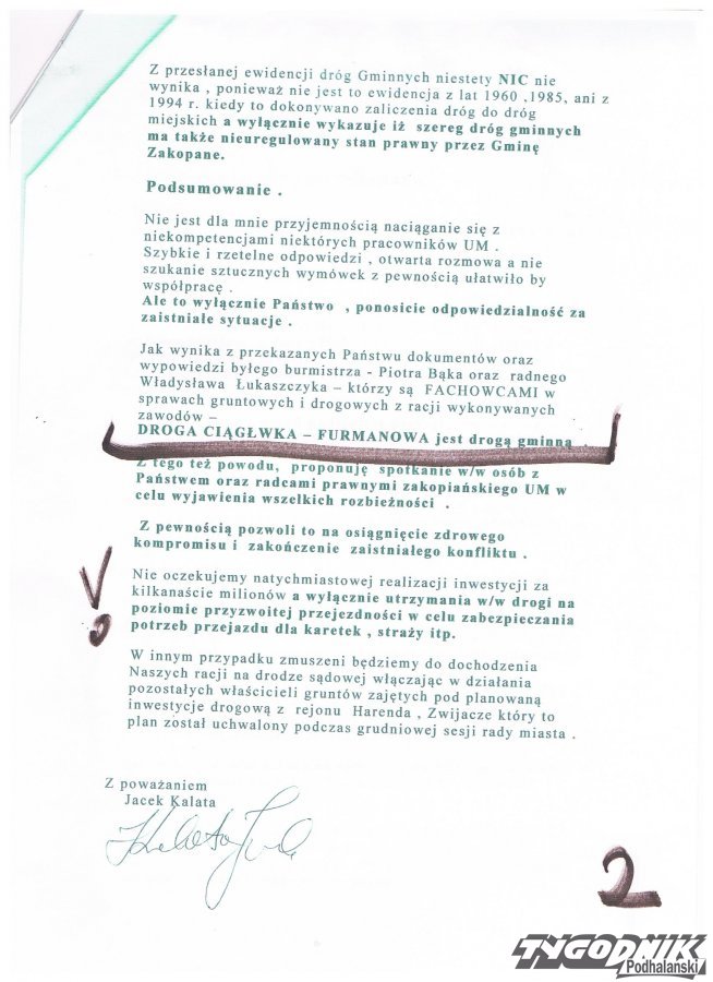 Burmistrz miasta Zakopanego Janusz Majcher od 2008 r. nie odpowiedział na propozycje kompromisowego rozwiązania konfliktu zaprezentowanego przez właścicieli terenów i nawet nie podjął próby negocjacji .