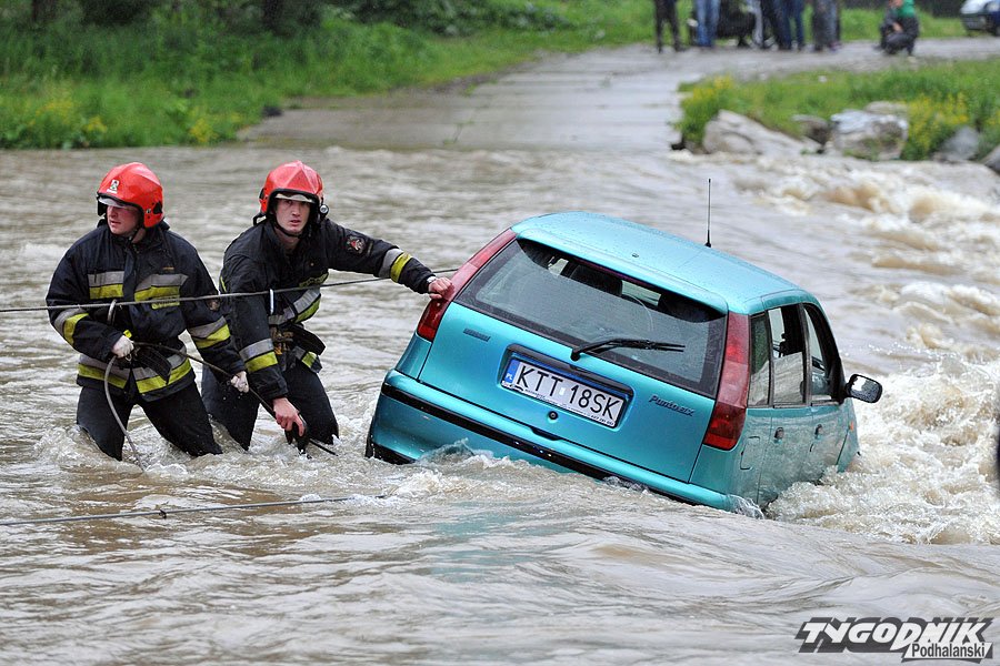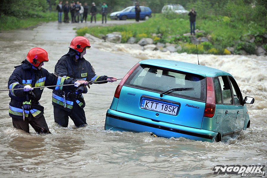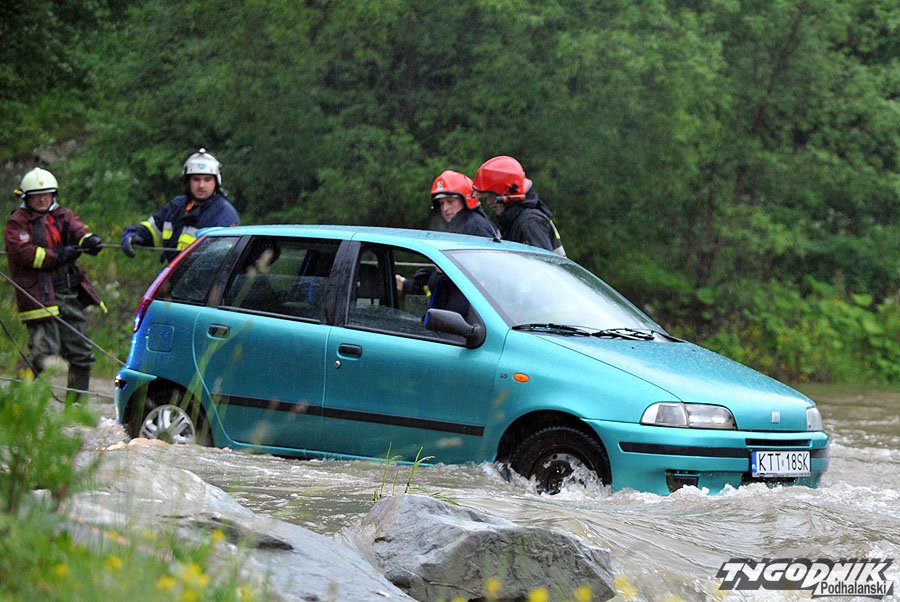Trzech pijanych riderów utknęło w rwącej rzece. Do zdarzenia doszło w okolicy mostu łączącego Biały Dunajec z Gliczarowem Dolnym. Osobowy fiat próbował przejechać rwący nurt Białego Dunajca, lecz po kilkunastu metrach woda zniosła samochód i uwięziła jadących wewnątrz mężczyzn. Akcja ratunkowa trwała ponad dwie godziny.