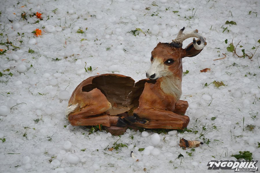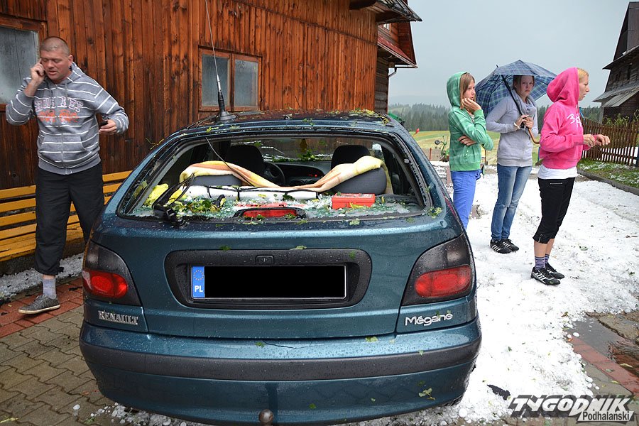 Nad Bukowiną Tatrzańską przeszło wielkie gradobicie. Mieszkańcy chowali się w piwnicach. Jedna z jadących w samochodzie osób została ranna w głowę. Grad wielkości śliwek padał też w Jurgowie i na Brzegach.