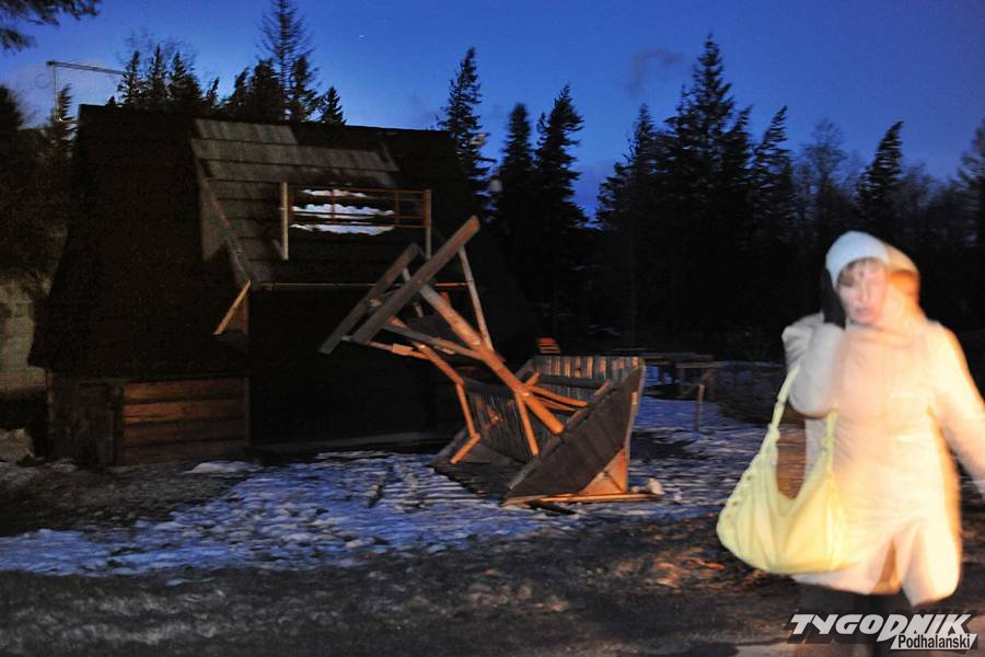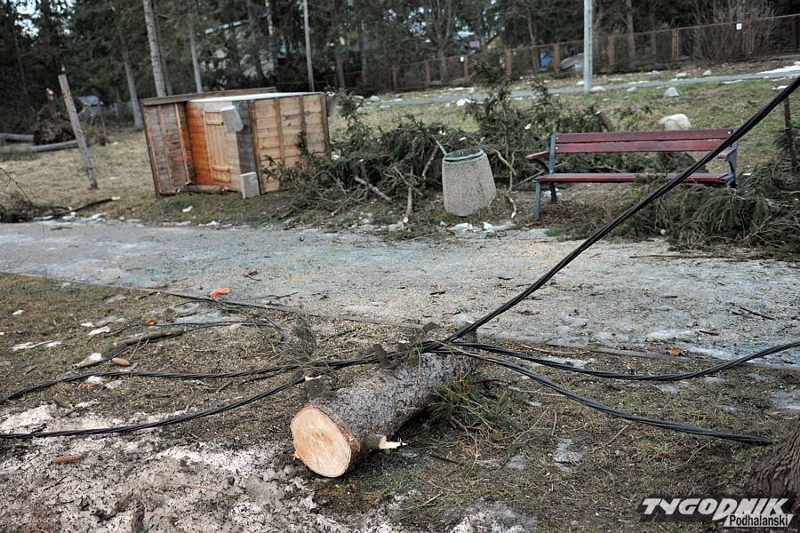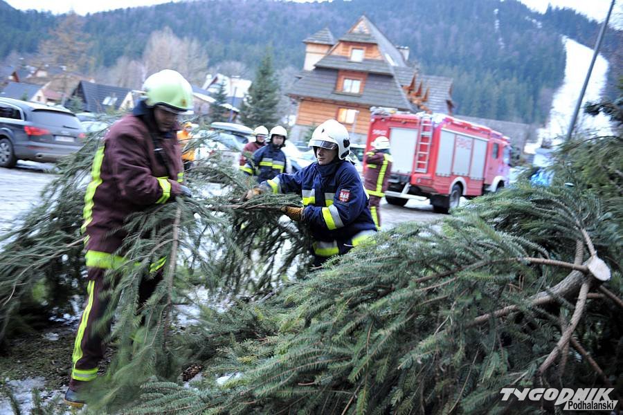 Kilkaset połamanych i powalonych drzew, zniszczone samochody, płoty, zerwane linie energetyczne, telefoniczne i uszkodzone dachy - to efekt bardzo silnego halnego, który w noc wigilijną nawiedził Podhale. Najbardziej ucierpiało Zakopane i Kościelisko. Również w pierwszy dzień Bożego Narodzenia nie było okazji do świętowania - od rana do wieczora trwała akcja usuwania szkód po halnym.