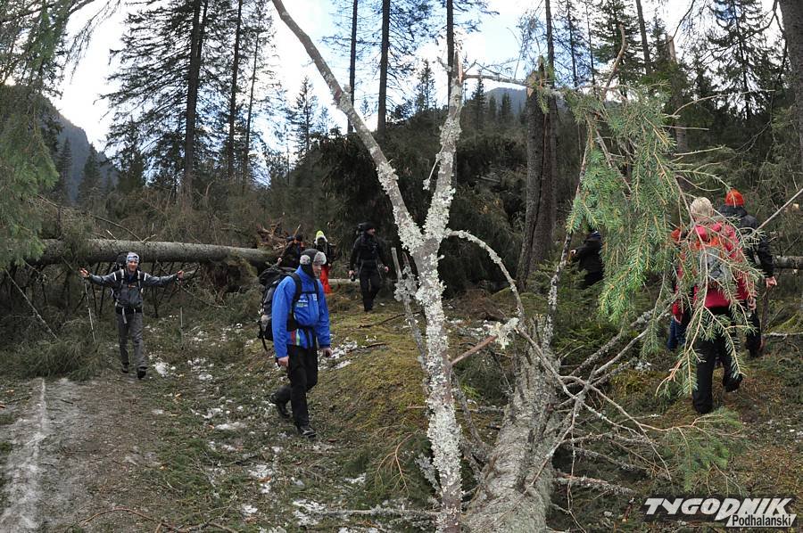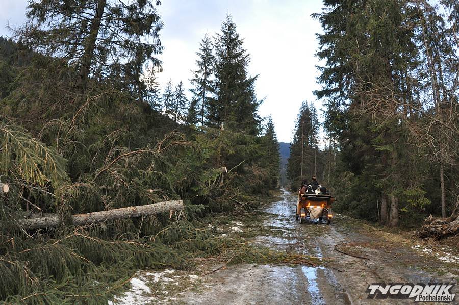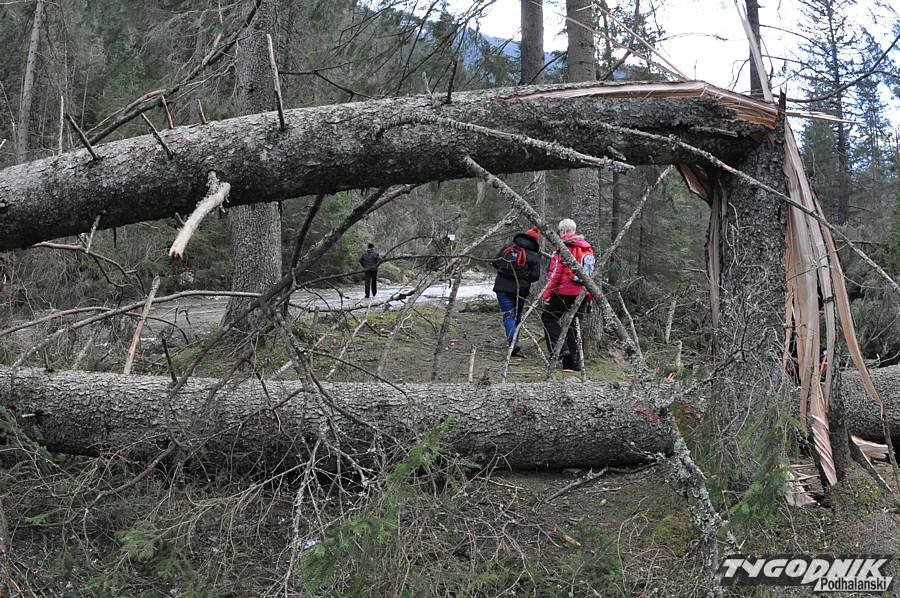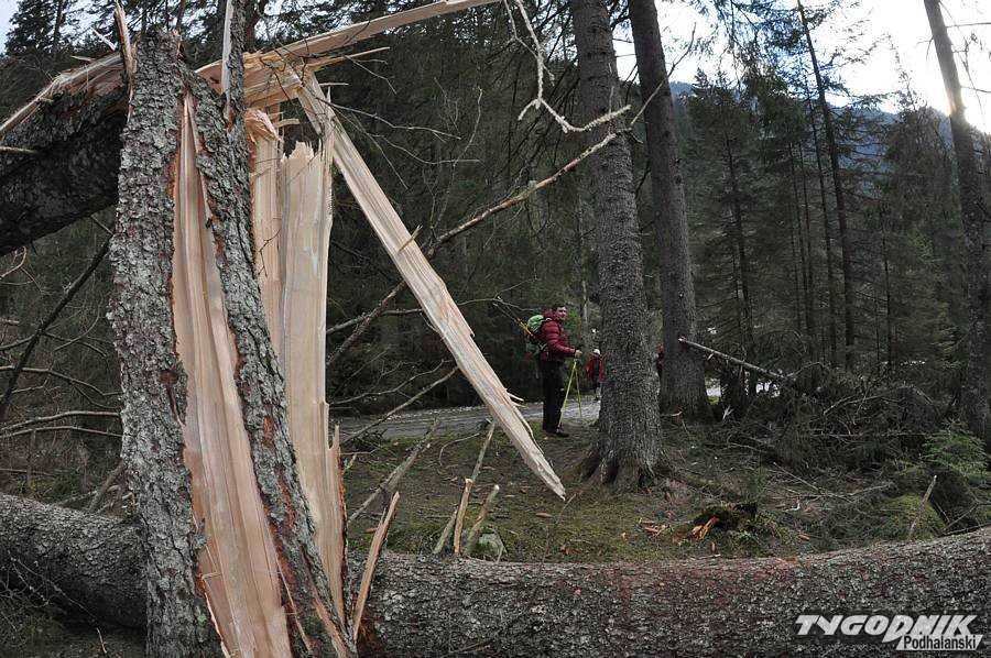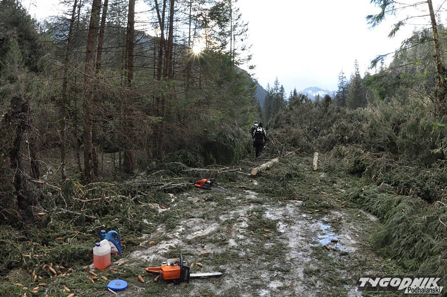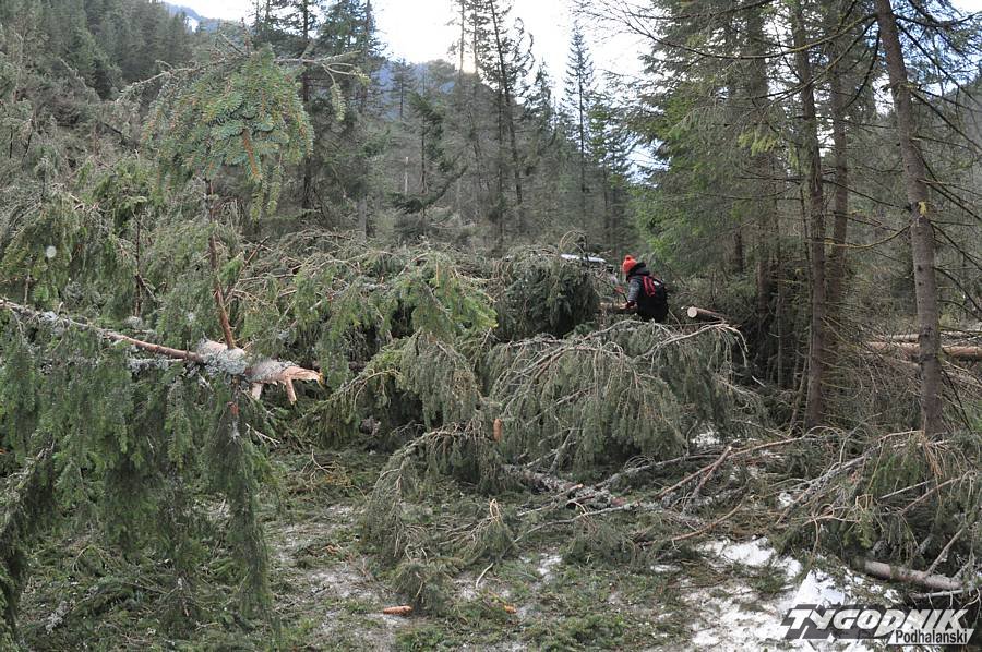 Wczoraj wieczorem udało się udrożnić dojście do schroniska na Polanie Chochołowskiej. Na szlaku zalegały setki drzew powalonych podczas halnego, który nawiedził Zakopane i gminę Kościelisko w czasie minionych świąt Bożego Narodzenia. Krajobraz Doliny Chochołowskiej zmienił się nie do poznania. Zresztą widać to dobrze na zdjęciach Zofii Szwajnos.