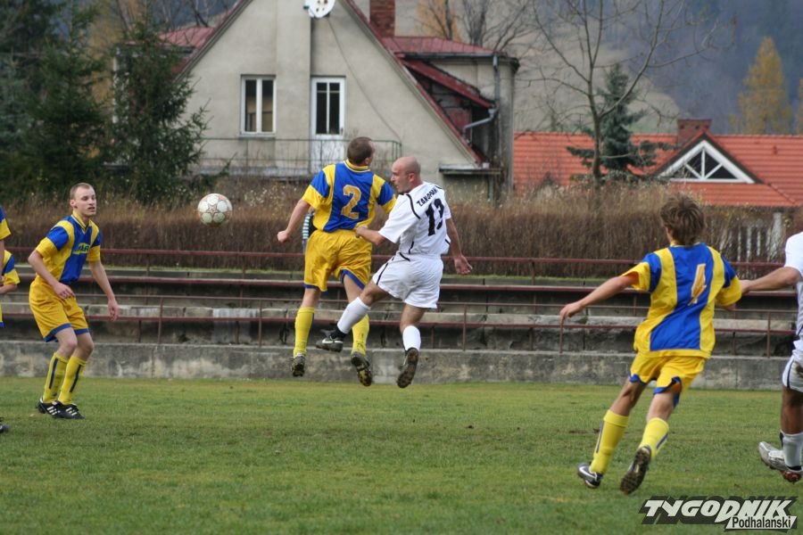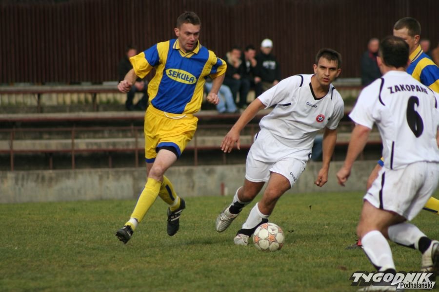 KS Zakopane - Łosoś Łososina Dolna 3:0. To wynik konfrontacji odpowiednio: trzeciej i drugiej drużyny w tabeli VI ligi. Dzięki temu Zakopane ma teraz o jeden punkt więcej niż Łosoś, ale drużynie z Łososiny przyznany zostanie jeszcze walkower za nierozegrany mecz z Porońcem. Bramki dla Zakopanego strzelali: Frasunek, Piekarczyk i Stępień.