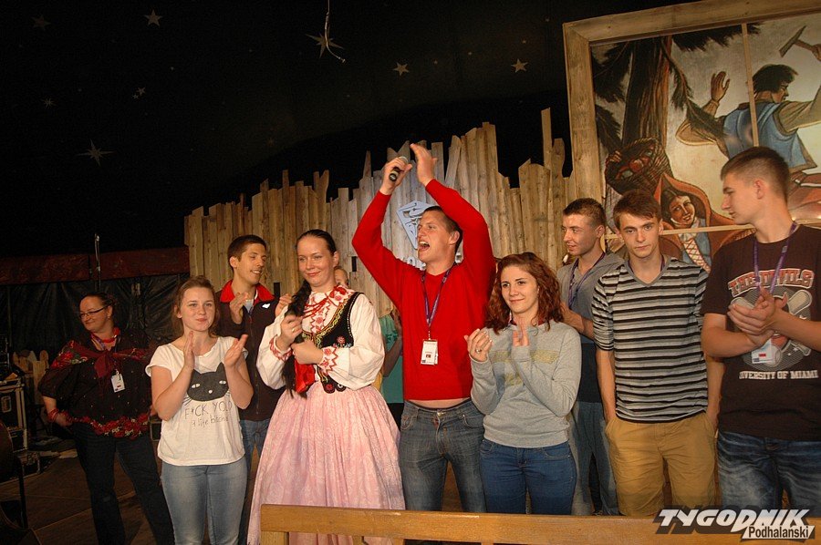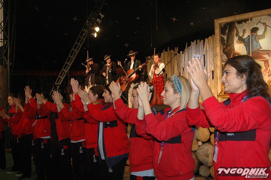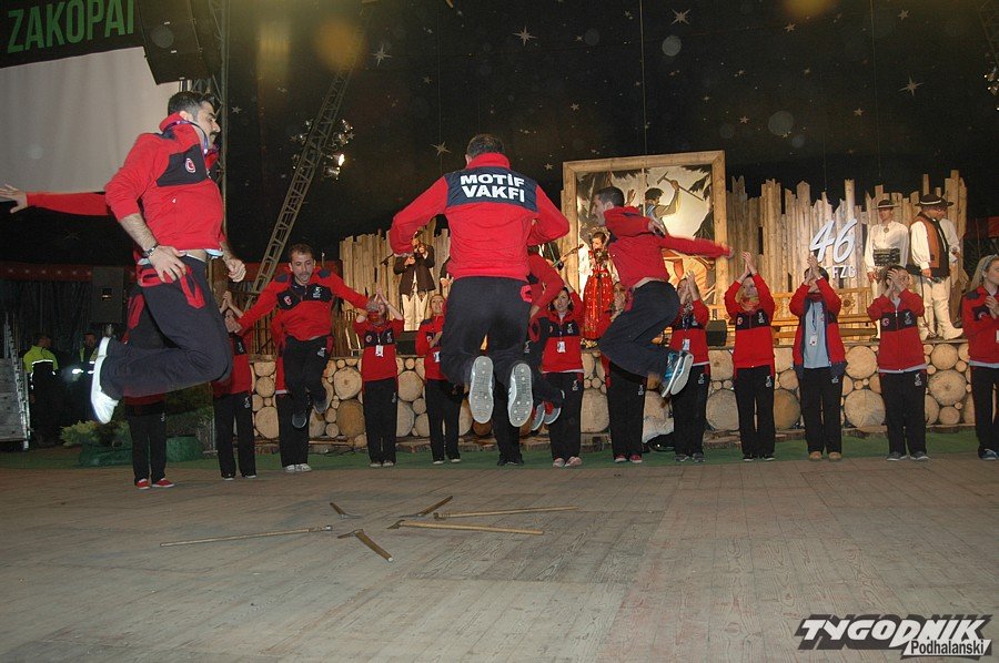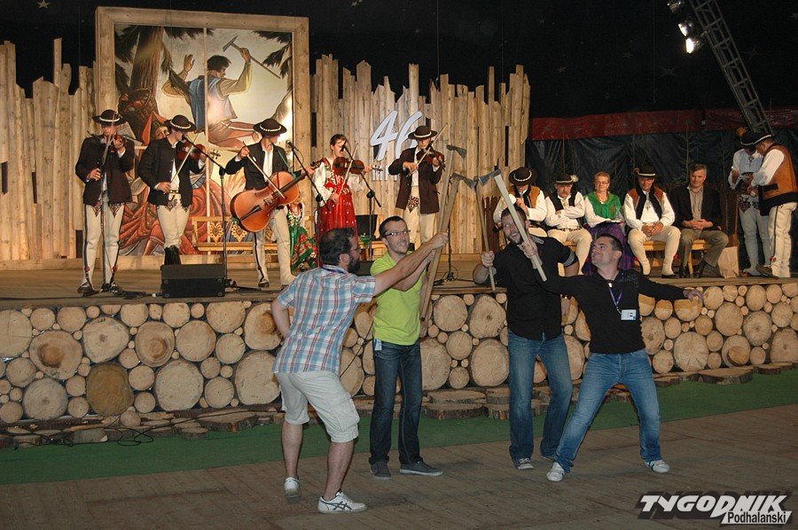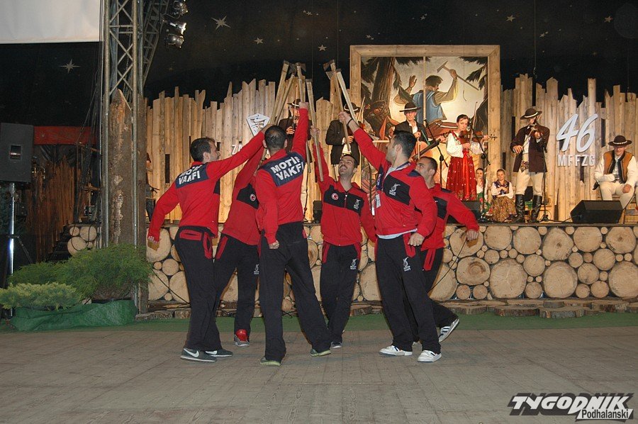 Piątkowy wieczór - po koncercie finałowym, który zakończył 46. Międzynarodowy Festiwal Folkloru Ziem Górskich w Zakopanem - przedłużył się do późnych godzin nocnych. W "chuścianej izbie" odbyła się zabawa wszystkich zespołów. Były konkursy na zaśpiewanie "Górole, górole..." i taniec zbójnicki. Pierwszą konkurencję wygrali Chorwaci, a drugą Turcy. Ci pierwsi w nagrodę otrzymali kapelusz góralski, a tureccy tancerze góralski pas nabijany ćwiekami.