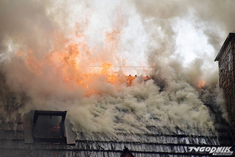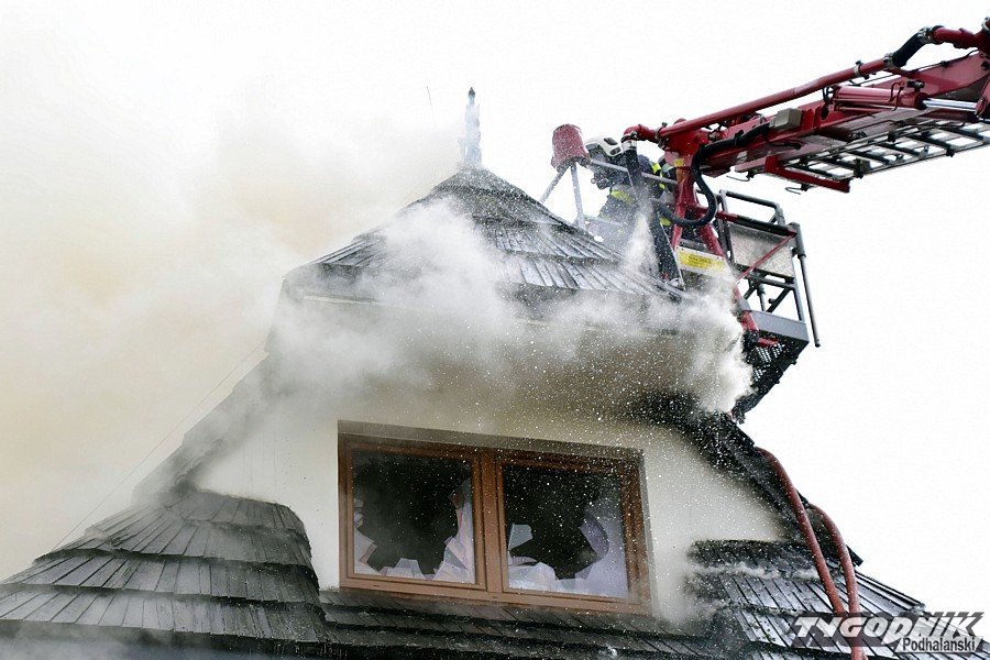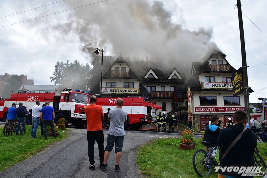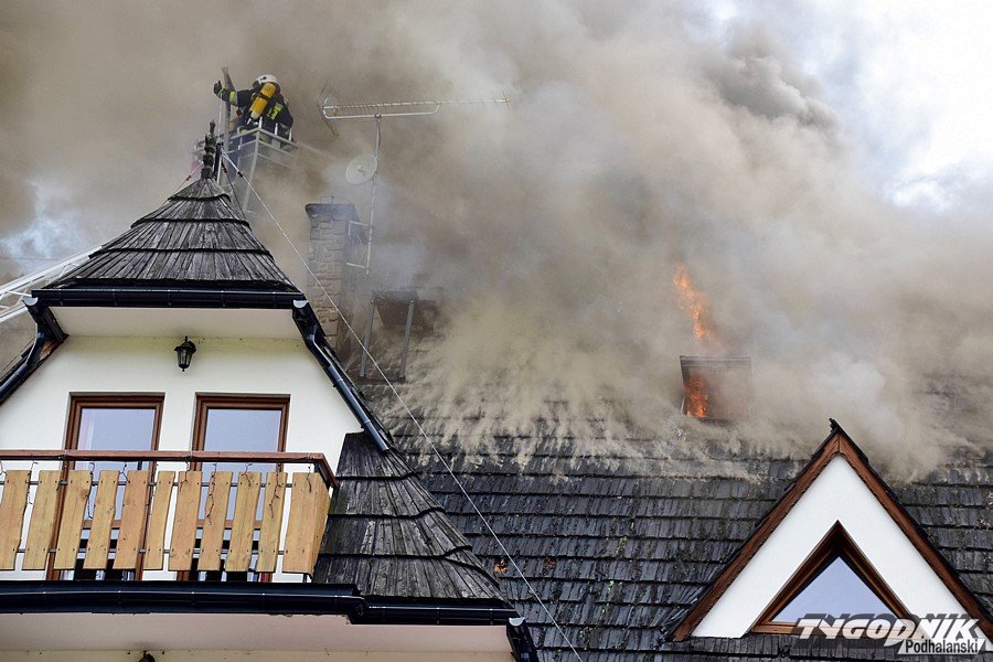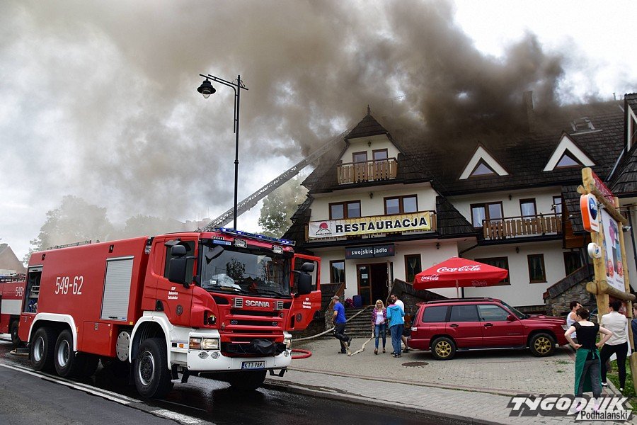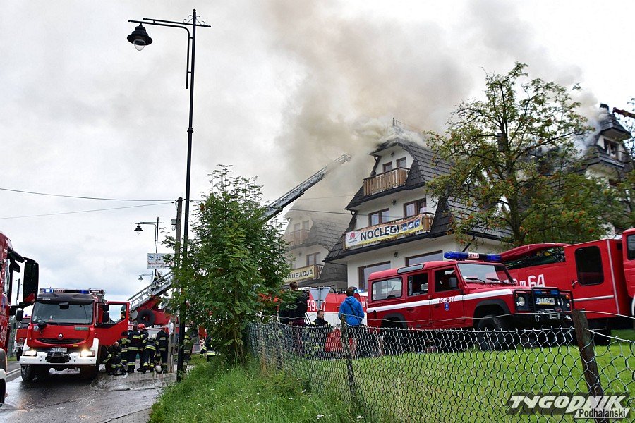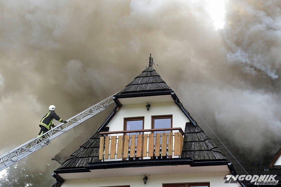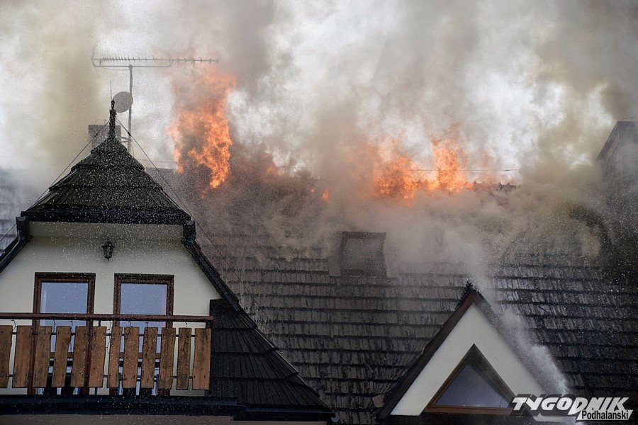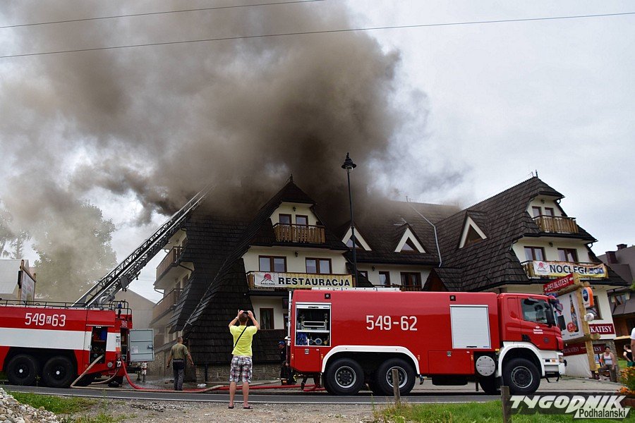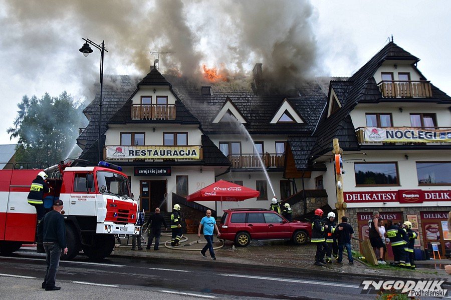 Kilkanaście jednostek straży pożarnej walczyło dziś z pożarem w Białce Tatrzańskiej. Ogień na poddaszu domu przy ulicy Środkowej pojawił się przed 13. W budynku znajduje się restauracja, pensjonat i delikatesy.