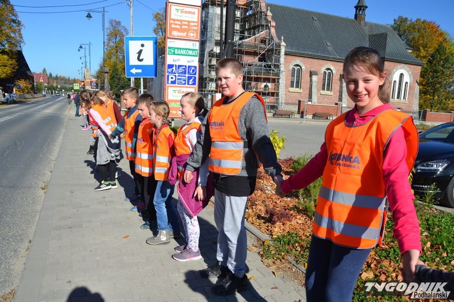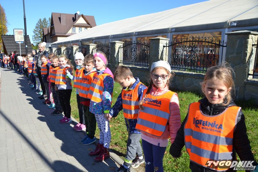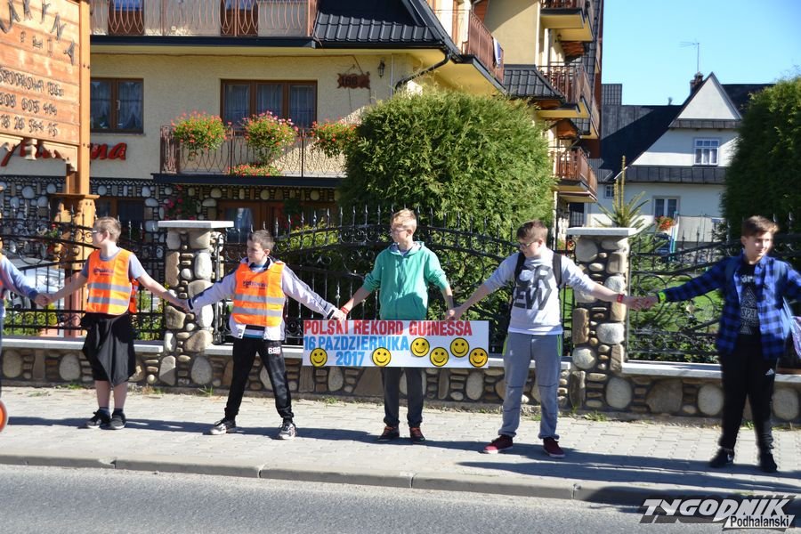 W Białce Tatrzańskiej padł ogólnopolski rekord Guinessa. Czegoś takiego w Białce jeszcze nie było. W poniedziałek, tuż przed południem na chodnik w centrum miejscowości wyszło blisko 500 osób - uczniowie szkoły podstawowej, pracownicy, mieszkańcy, przedszkolaki, a także uczniowie z innych szkół z terenu gminy Bukowina Tatrzańska. Wszyscy trzymali się za ręce i ustawili w szeregu, który liczył niemal pół kilometra. Każdy miał na sobie kamizelkę odblaskową albo odblaski na rękach. Wszystko to działo się w ramach akcji Odblaskowa Szkoła. Białka Tatrzańska postanowiła pobić ogólnopolski rekord Guinessa na najdłuższy łańcuch osób w odblaskach.