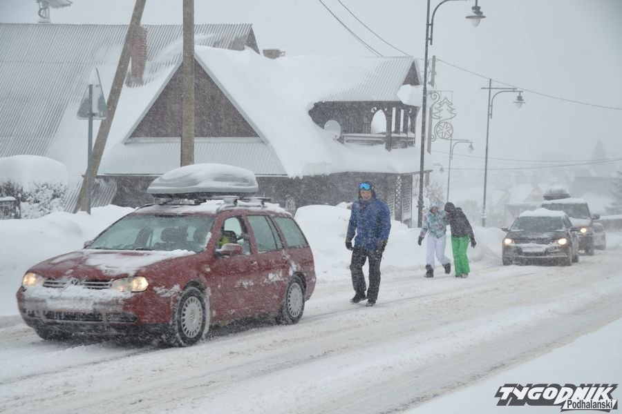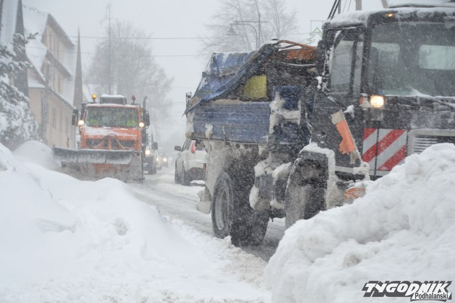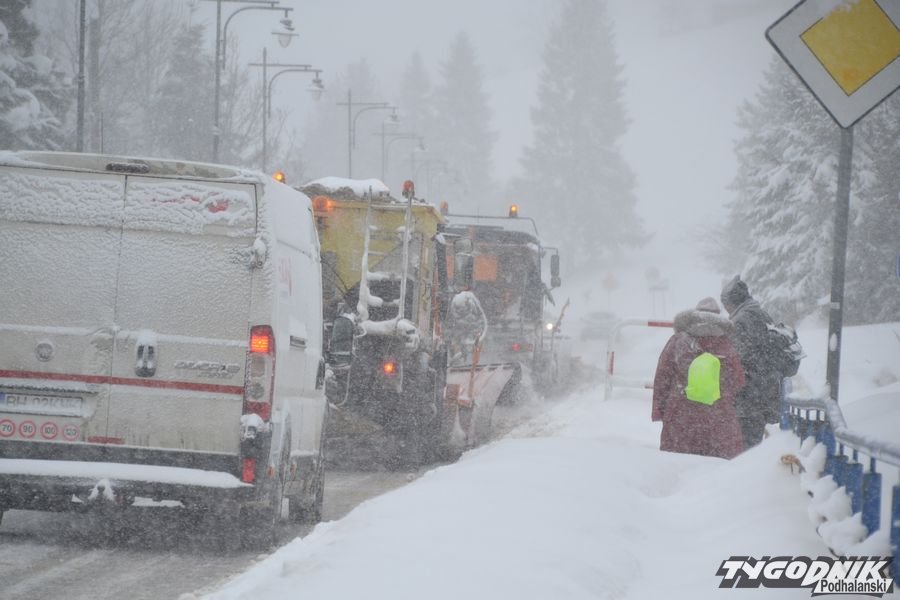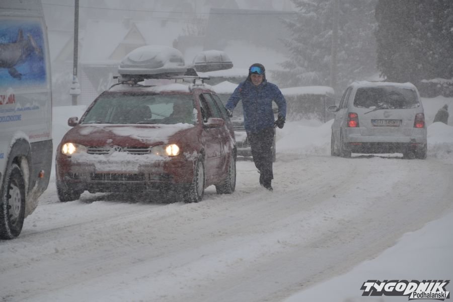 W dolnej części Bukowiny, w tzw. Poloku, niektóre samochody mają problem z wyjechaniem pod górę. Kto dziś nie musi wyjeżdżać samochodem, niech zostanie w domu.
