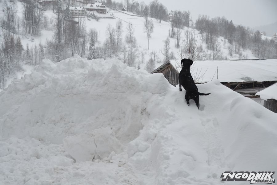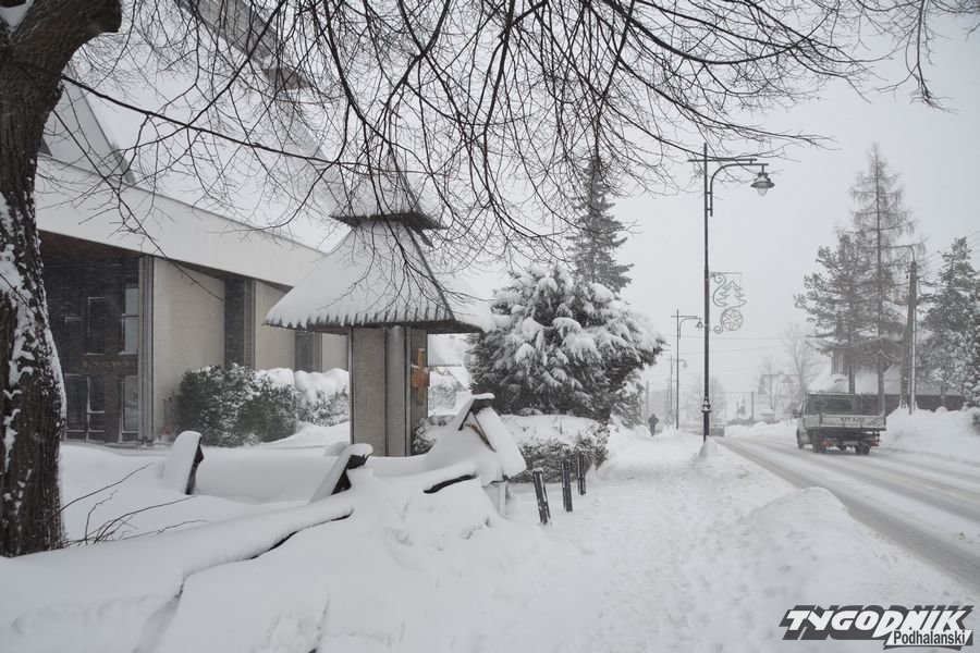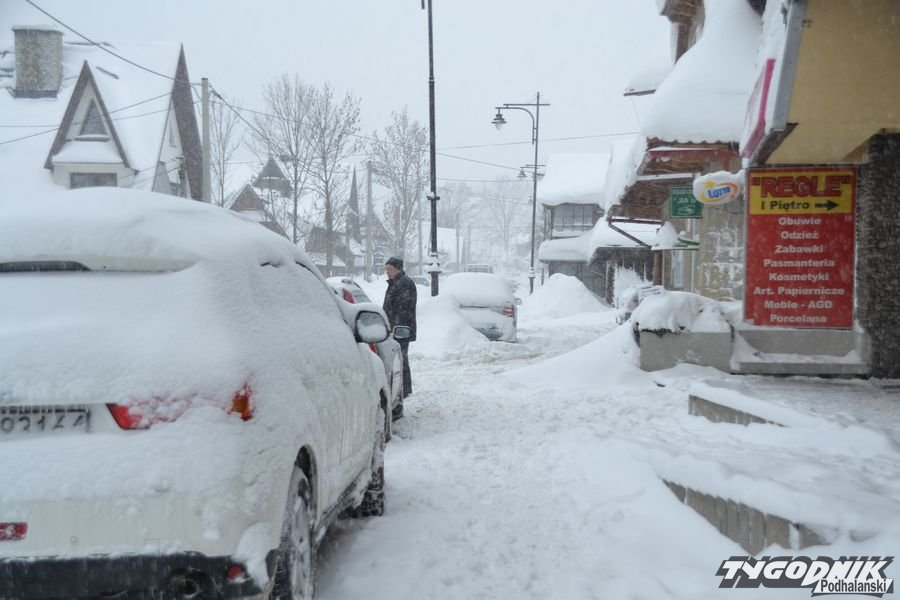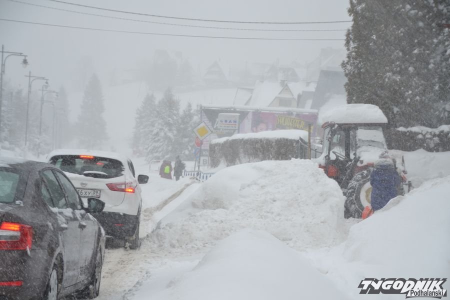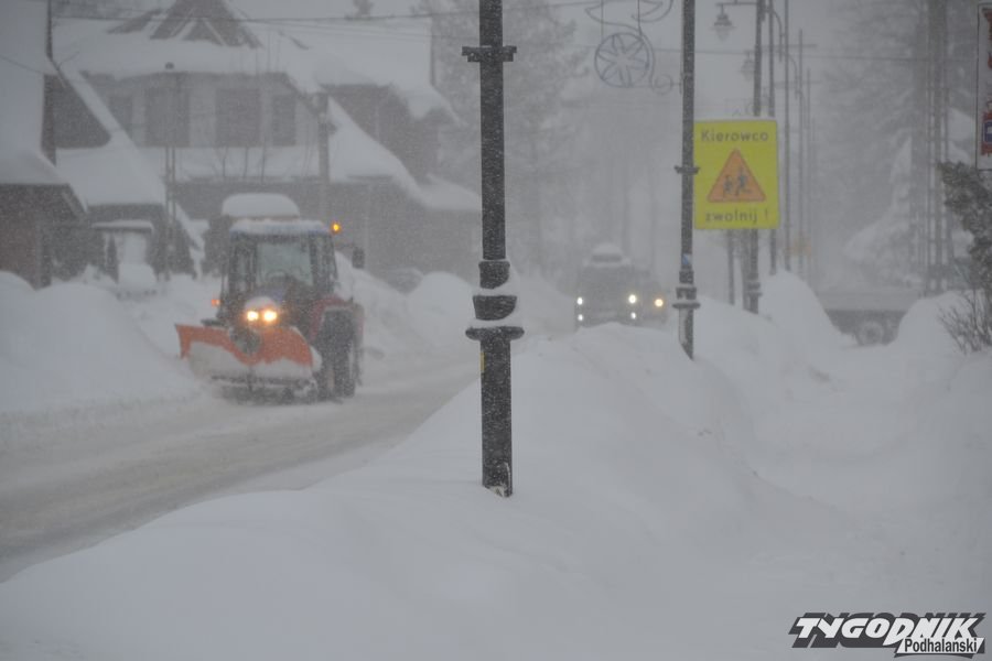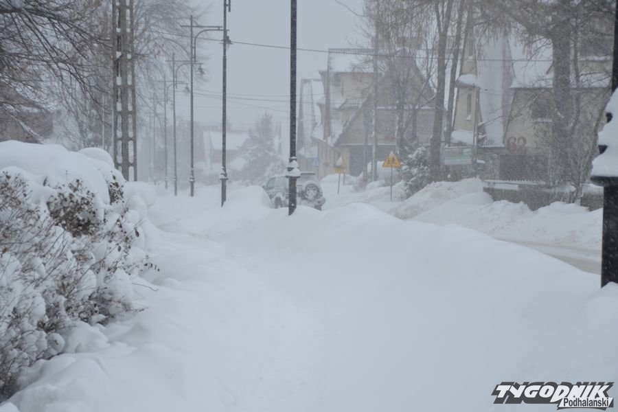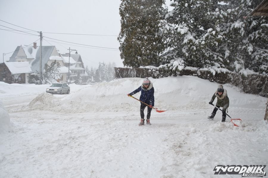 Zima nie ustępuje. Odśnieżanie chodników i posesji to syzyfowa praca. Na drodze trudne warunki. W Bukowinie Tatrzańskiej warunki do jazdy są trudne. Fakt że piaskarki jeżdżą regularnie, ale cały czas intensywnie pada śnieg.