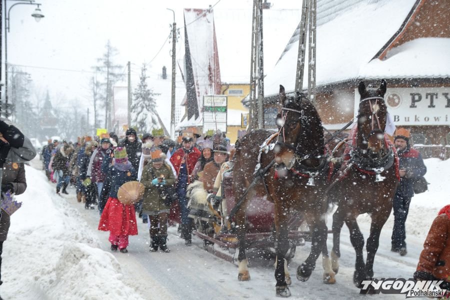 Dziś przez Bukowinę Tatrzańską przeszedł barwny orszak Trzech Króli. Orszak prowadziła muzyka góralska, szli trzej królowie (w roli: Stanisław Cikowski, Marek Wodziak, Wojciech Pawlikowski), kolędnicy misyjni, harcerze, mieszkańcy. W saniach jechała Święta Rodzina. W role Świętej Rodziny wcielili się Anna i Andrzej Bieniek z synem Franciszkiem. Korowód rozpoczął się po sumie. Wyruszył od kościoła do Domu Ludowego. Wszystko było w góralskiej oprawie. Orszak wzbudzał zainteresowanie zwłaszcza wśród turystów, którzy robili zdjęcia. Na koniec przy Domu Ludowym było wspólne kolędowanie. Modlitwie przewodniczył ks. Bartłomiej Skwarek, wikariusz parafii.
