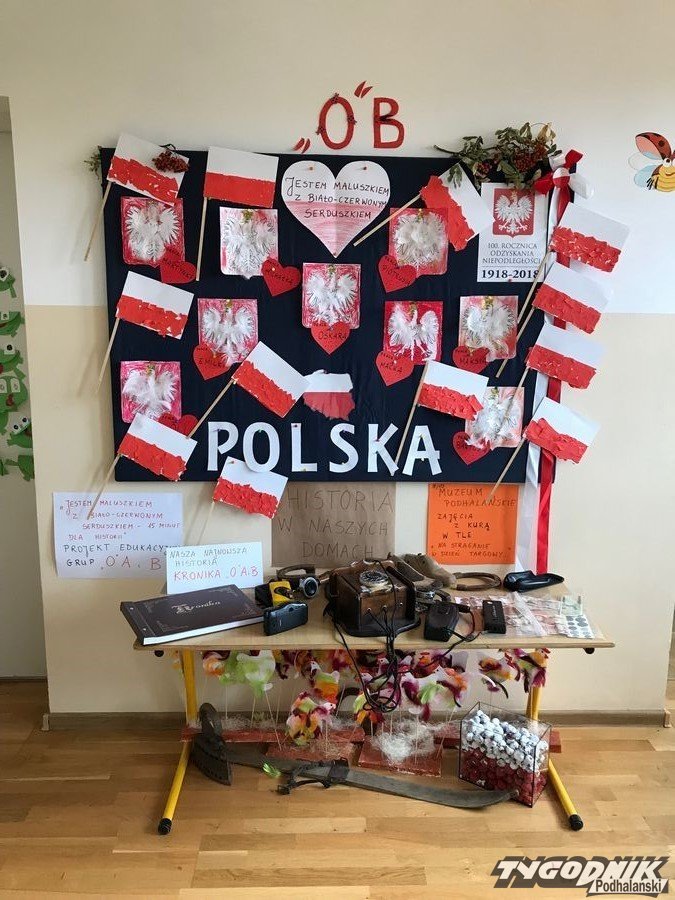 "Jestem maluszkiem z biało-czerwonym serduszkiem - 15 minut dla historii" - to tytuł projektu edukacyjnego, który był realizowany w październiku wśród najmłodszych wychowanków Szkoły Podstawowej w Białce Tatrzańskiej - w dwóch oddziałach przedszkolnych - w grupach: "Biedronki" i "Żabki". Celem projektu było przygotowanie najmłodszych dzieci do obchodów 100. rocznicy odzyskania przez Polskę niepodległości.