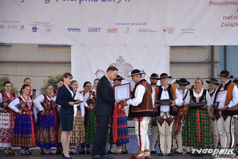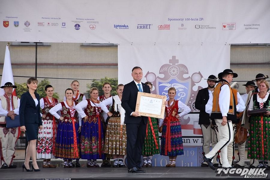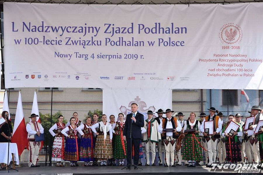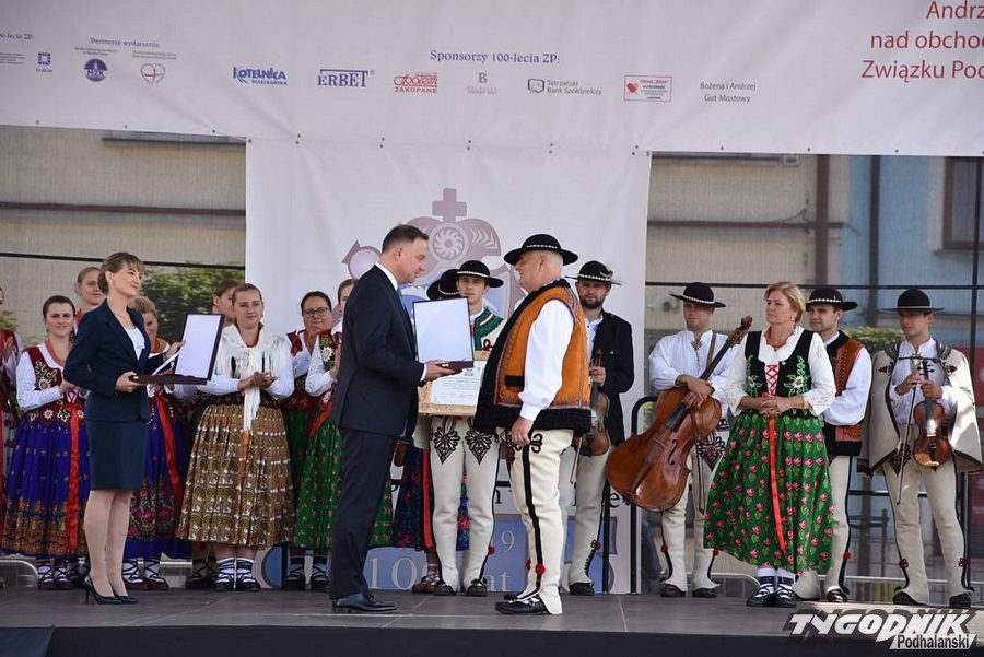 Najpierw Msza św. w kościele NSPJ, potem uroczystości na Rynku, a na zakończenie Nadzwyczajny Zjazd Związku Podhalan w "Podhalance" - w Nowym Targu odbyły się kolejne ważne wydarzenia związane ze 100-leciem tej największej góralskiej organizacji. W nowotarskich uroczystościach wziął udział prezydent RP Andrzej Duda, który wizytę w stolicy Podhala rozpoczął od złożenia kwiatów przy pomniku Władysława Orkana na Placu Słowackiego. Potem udał się do kościoła NSPJ na Mszę św., której przewodniczył metropolita krakowski abp Marek Jędraszewski. Po Mszy św. prezydent wraz z góralami, parlamentarzystami i władzami samorządowymi przeszedł ulicą Kazimierza Wielkiego z kościoła do Rynku, gdzie miała miejsce dalsza część uroczystości związanych ze 100-leciem powstania ZP.