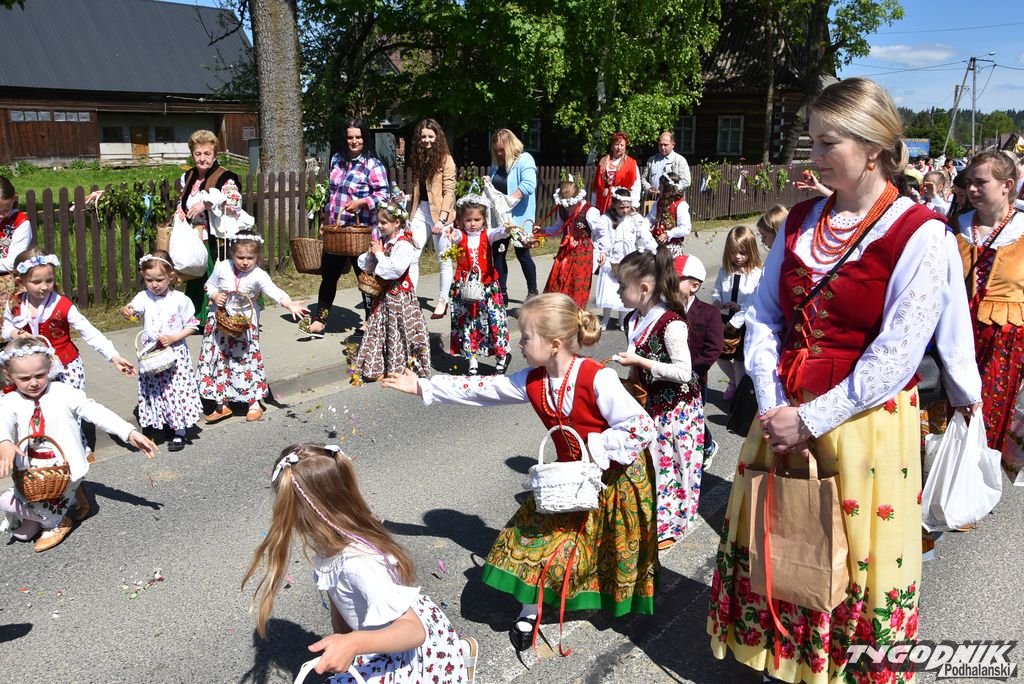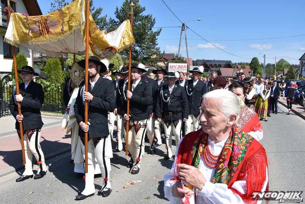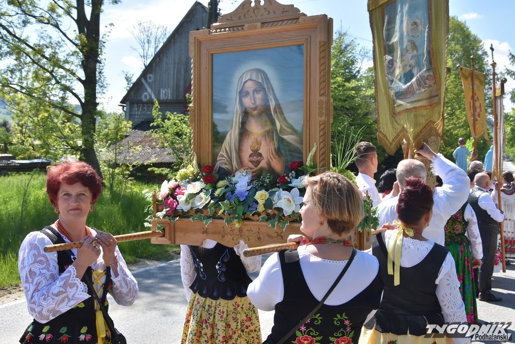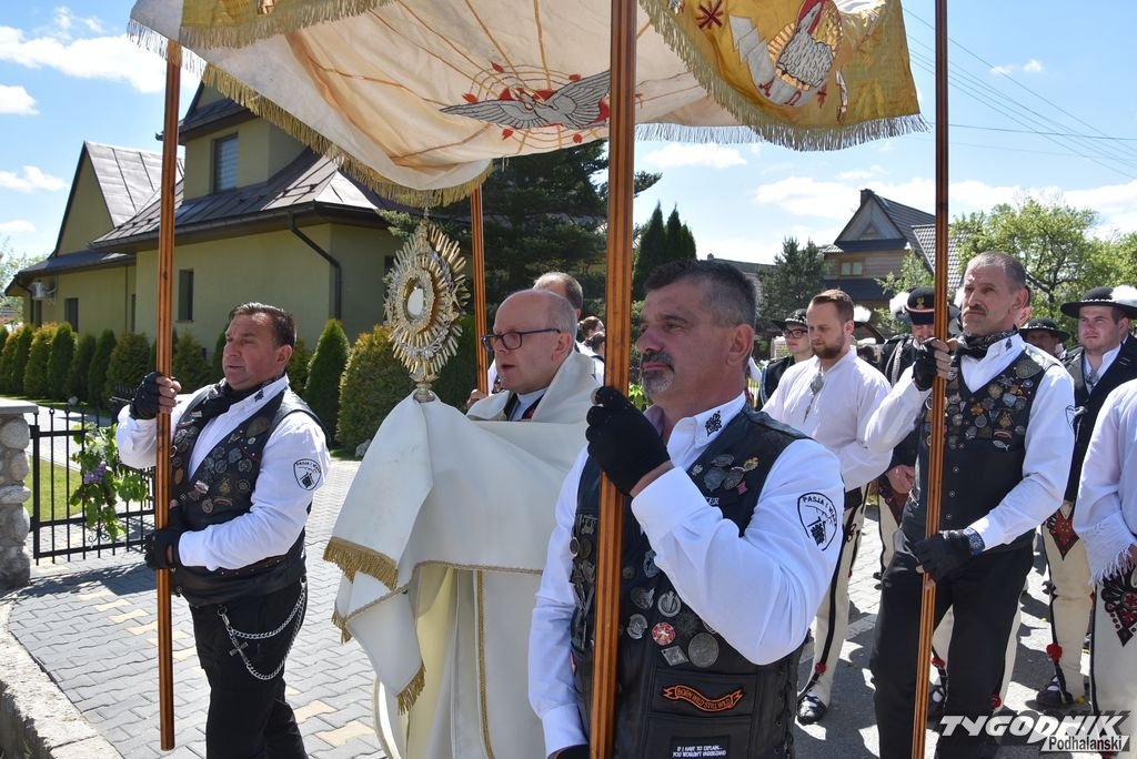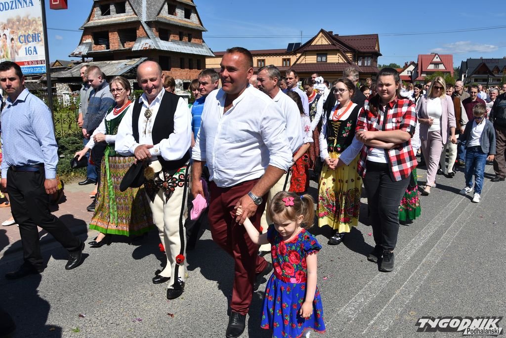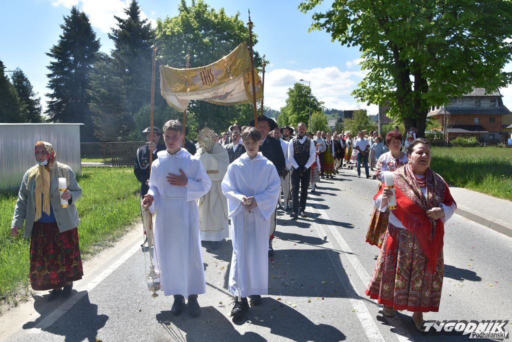 W Miętustwie górale w procesji Bożego Ciała przeszli z kościoła do ronda w Ratułowie i z powrotem. Fot. Jan Głąbiński