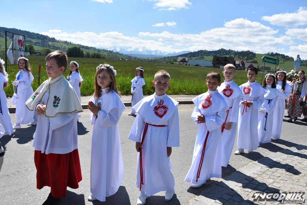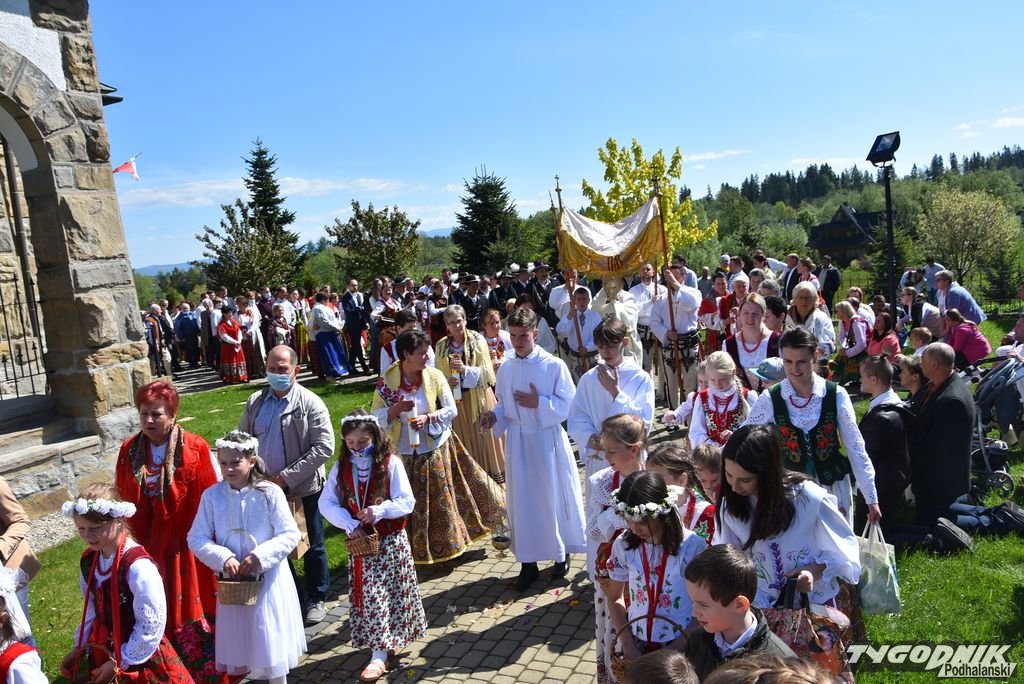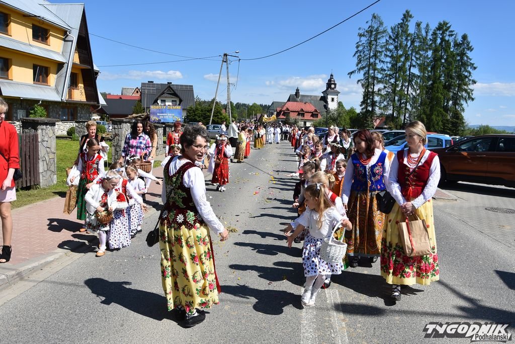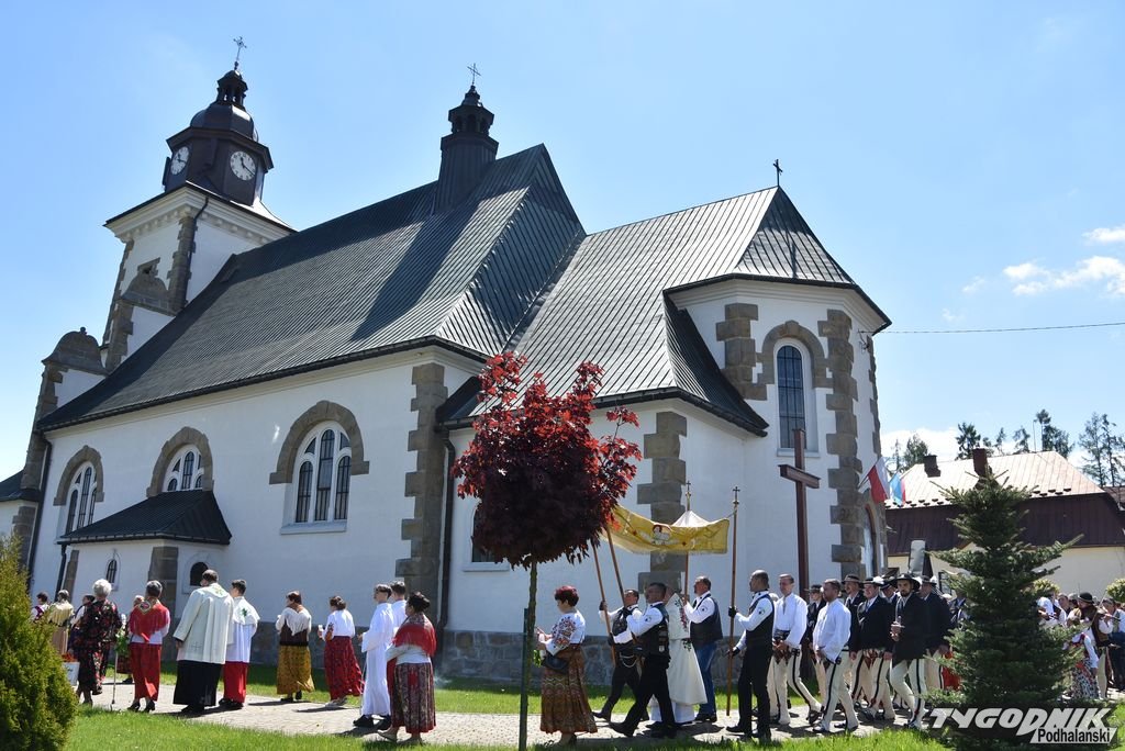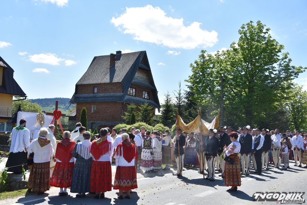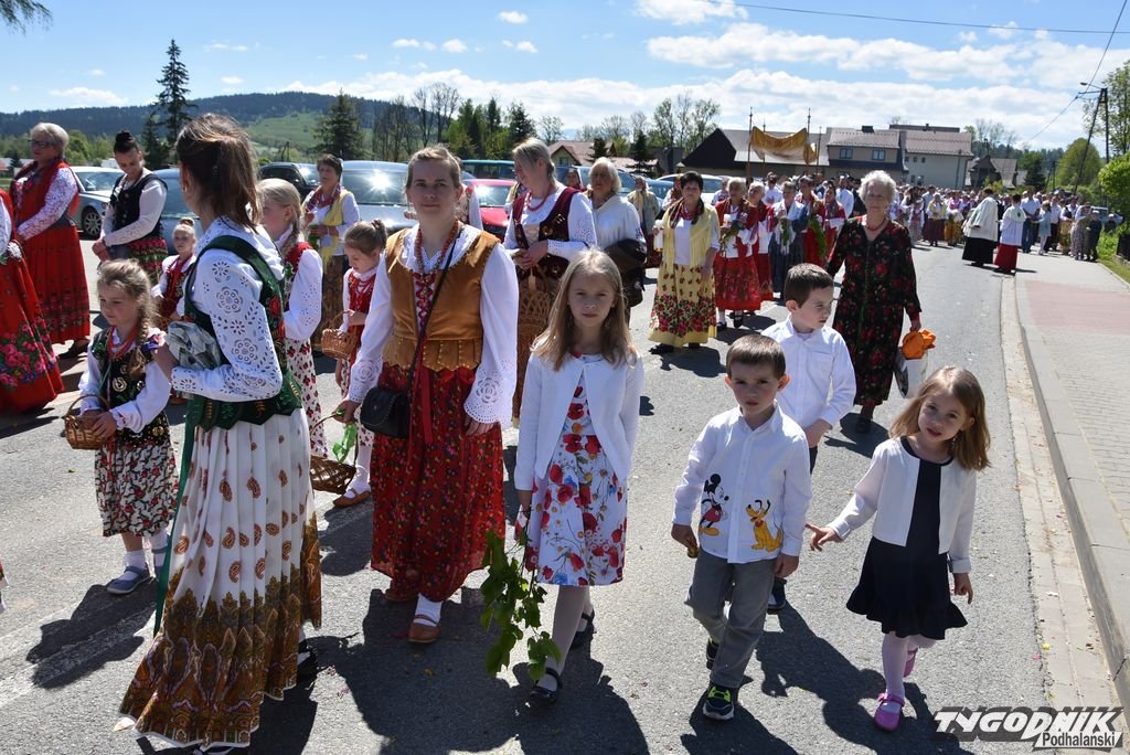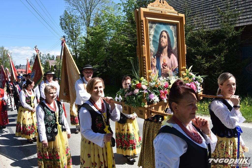 W Miętustwie górale w procesji Bożego Ciała przeszli z kościoła do ronda w Ratułowie i z powrotem. Fot. Jan Głąbiński