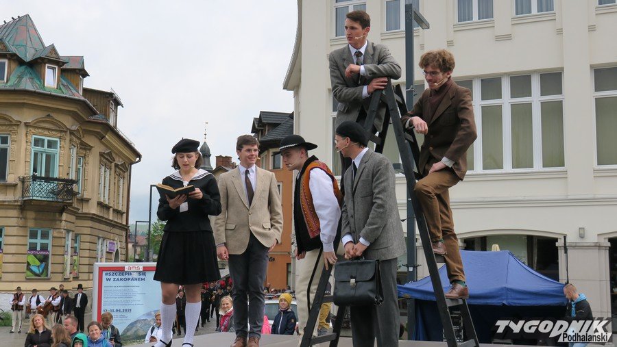Niedziela w Zakopanem upłynęła pod znakiem uroczystych obchodów 100. rocznicy wybuchu III Powstania Śląskiego. Aktorzy Teatru Witkacego pod kierunkiem Piotra Najbora dali przedstawienie plenerowe "Z Zakopanego na Górny Śląsk. Historia wymarszu ochotników z 2. Baterii Artylerii". W spektaklu wraz z aktorami zagrali mieszkańcy Zakopanego i uczniowie Liceum Ogólnokształcącego im. Oswalda Balzera w Zakopanem. Na szczęście pogoda w niedzielę była łaskawa, mimo przejmującego jak na czerwiec chłodu, obyło się bez deszczu. Na Placu Niepodległości bez przeszkód zagrała Orkiestra Dęta Kopalni Węgla Kamiennego Ziemowit. Obchody stulecia Powstania Śląskiego potrwają pod Giewontem do 20 czerwca. Organizatorzy: Towarzystwo Gimnastyczne "Sokół" i Miasto Zakopane we współpracy z Uniwersytetem Śląskim przygotowało szereg wykładów, konferencji popularnonaukowych, wystawy i spotkania online.