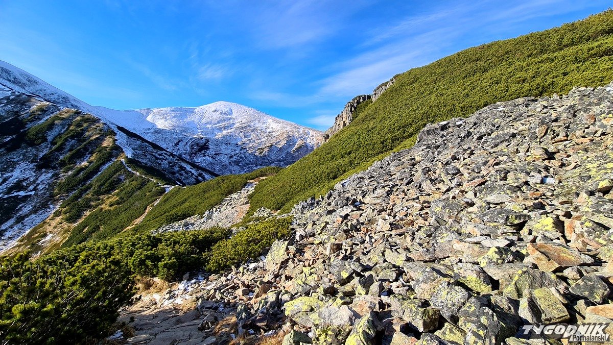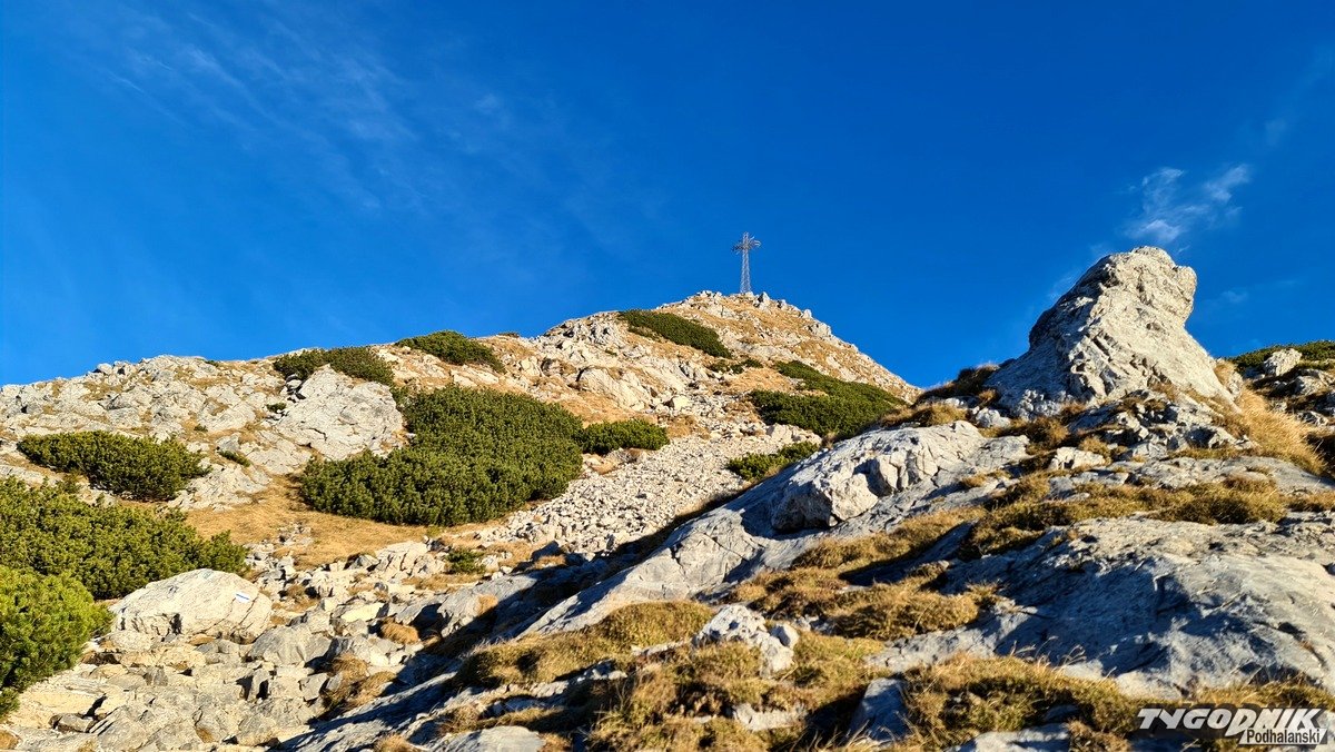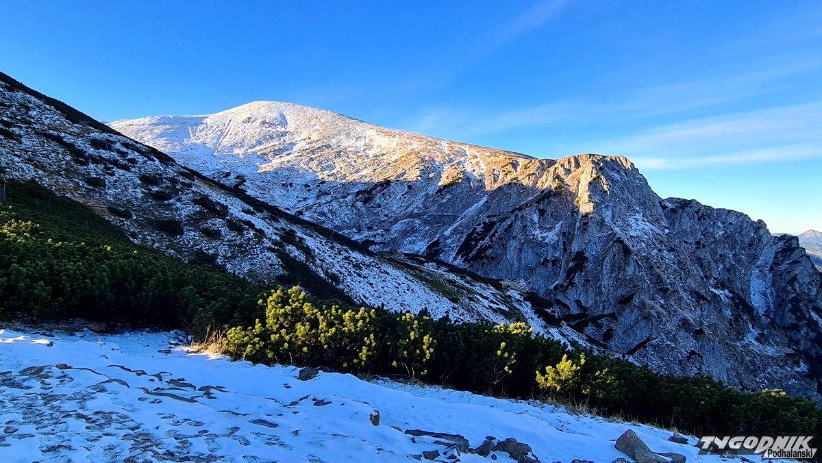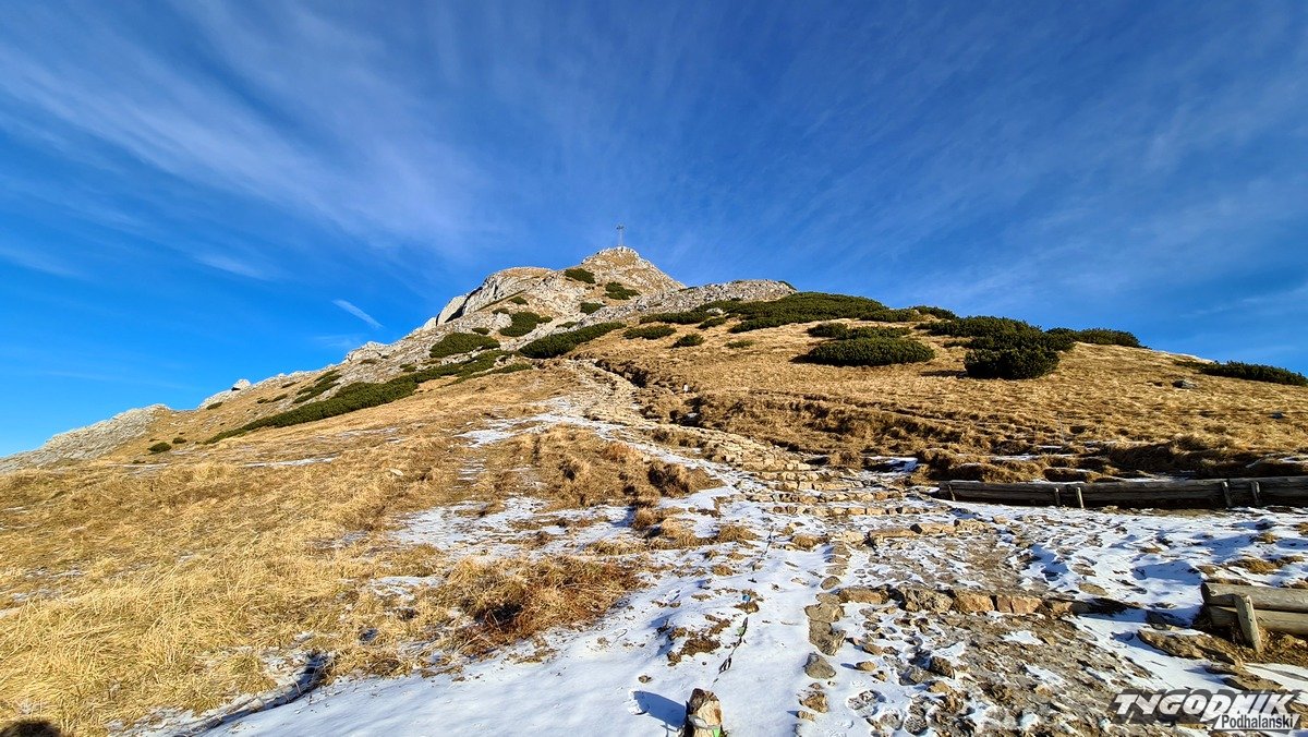 Zwykle patrzymy na niego od północnej, niezwykle skalistej strony. Rzadziej podziwiamy od południowej, bardziej słonecznej strony. Nie ulega wątpliwości, że Giewont należy do najpiękniejszych i najbardziej charakterystycznych szczytów w Tatrach. Tak wyglądał szlak na Giewont 10 listopada.