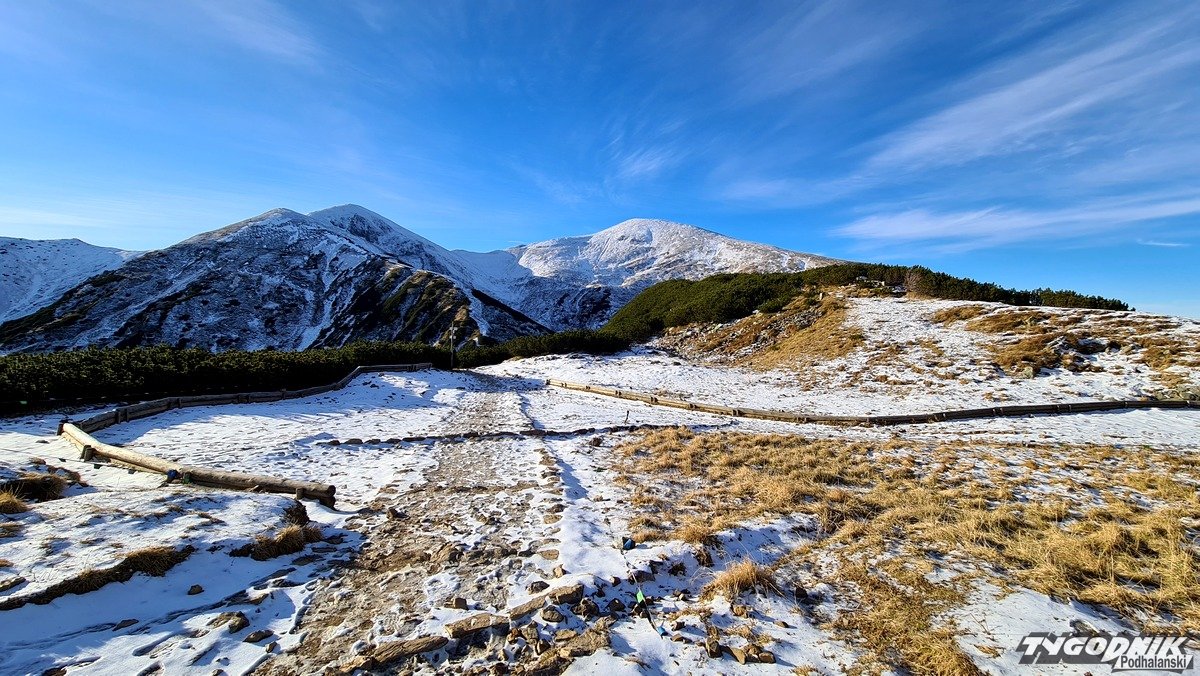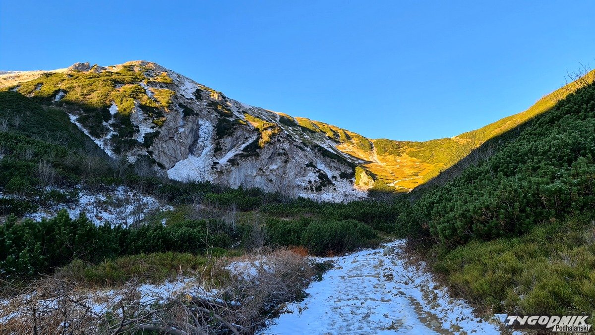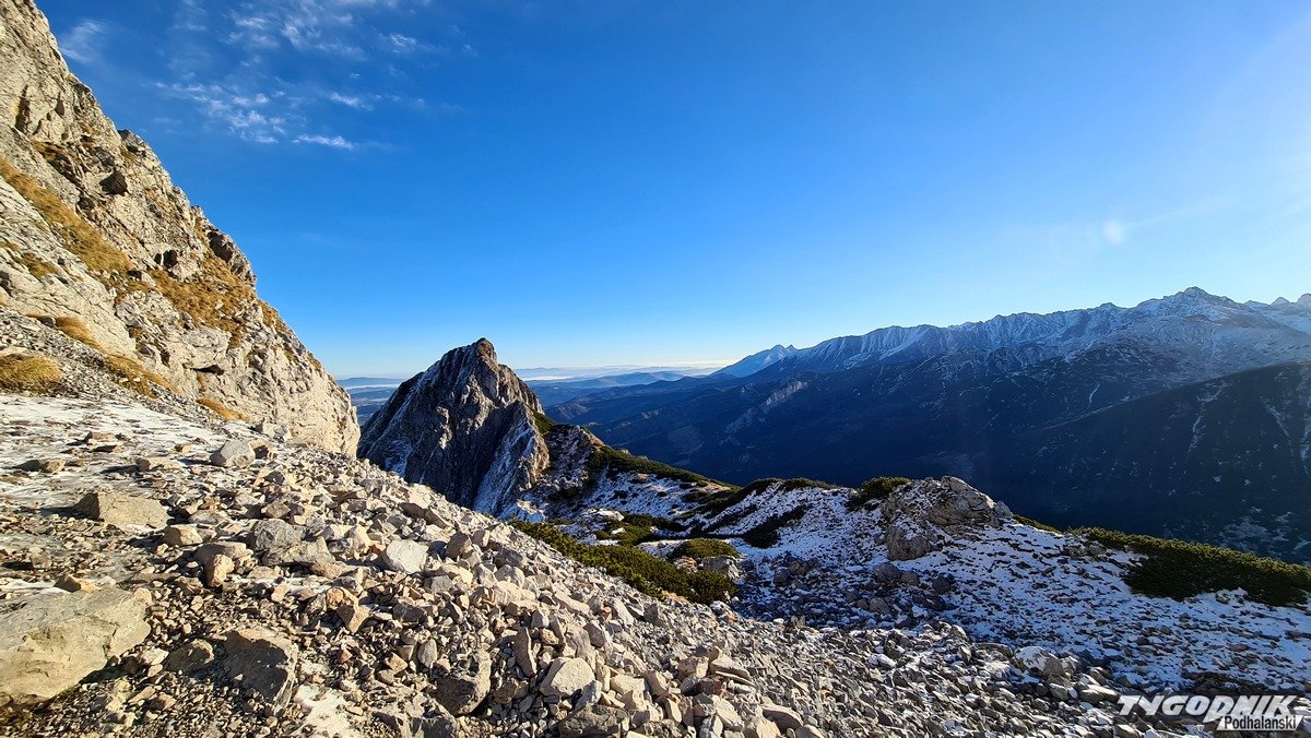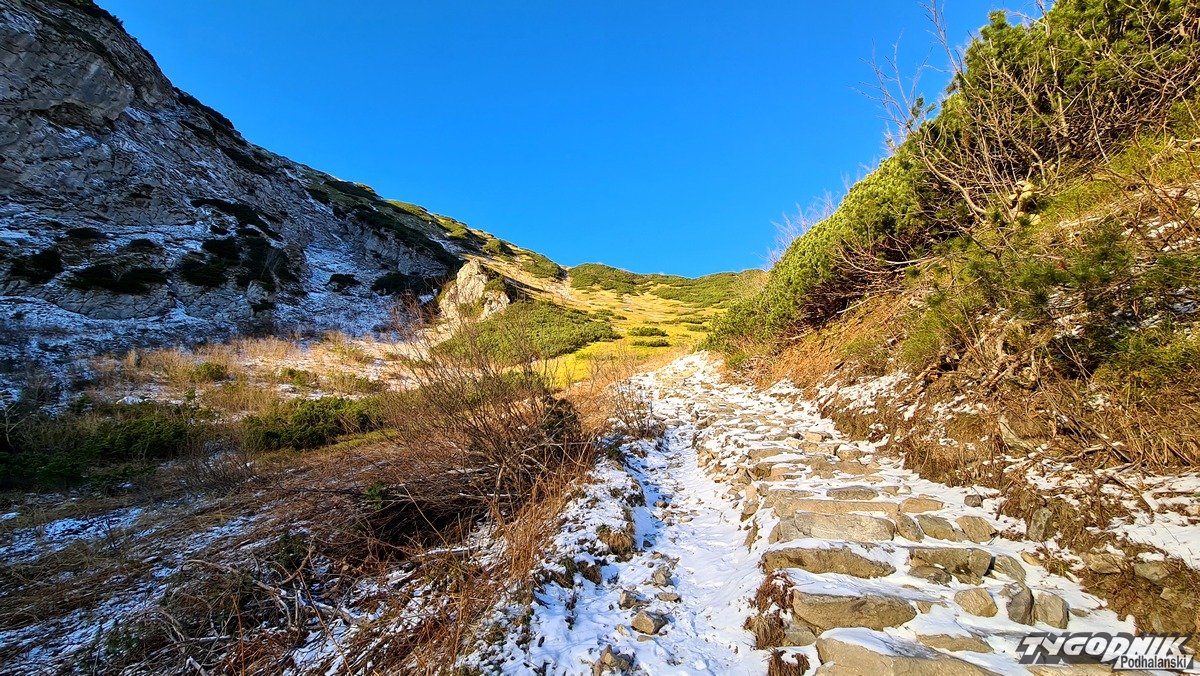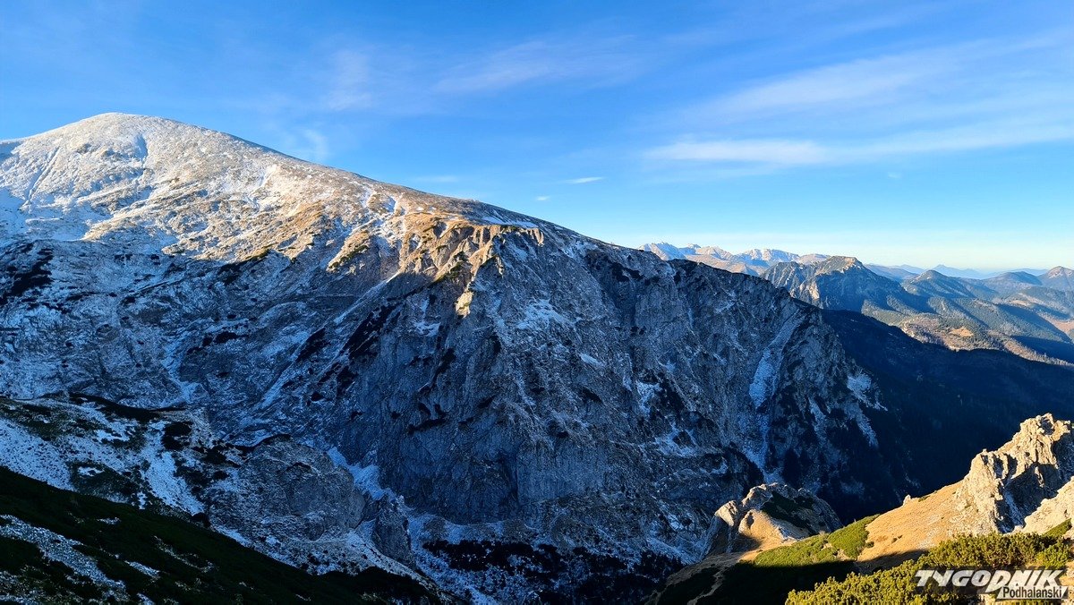Zwykle patrzymy na niego od północnej, niezwykle skalistej strony. Rzadziej podziwiamy od południowej, bardziej słonecznej strony. Nie ulega wątpliwości, że Giewont należy do najpiękniejszych i najbardziej charakterystycznych szczytów w Tatrach. Tak wyglądał szlak na Giewont 10 listopada.